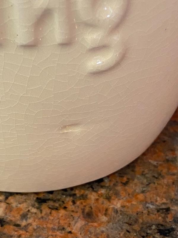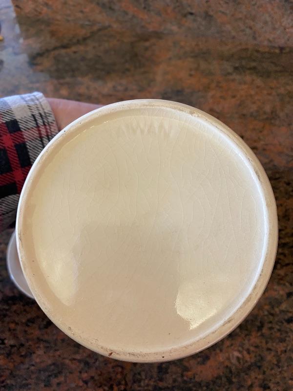Vintage ceramic drippings grease canister. Crazing in the glaze. There is a indent flaw near the bottom, doesn't really feel or look like a chip. Displays great.