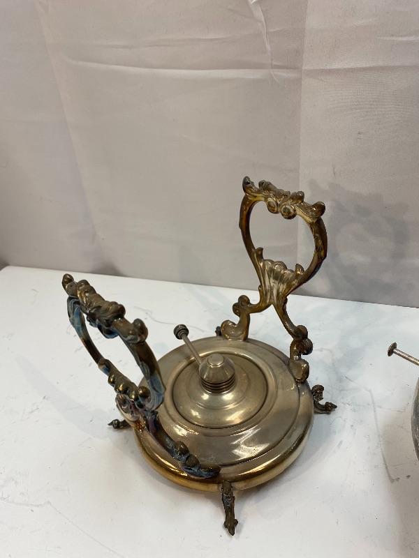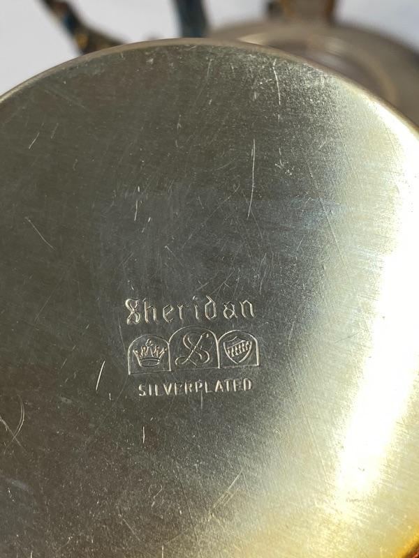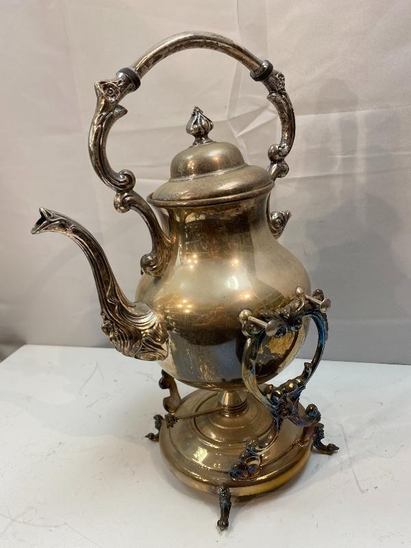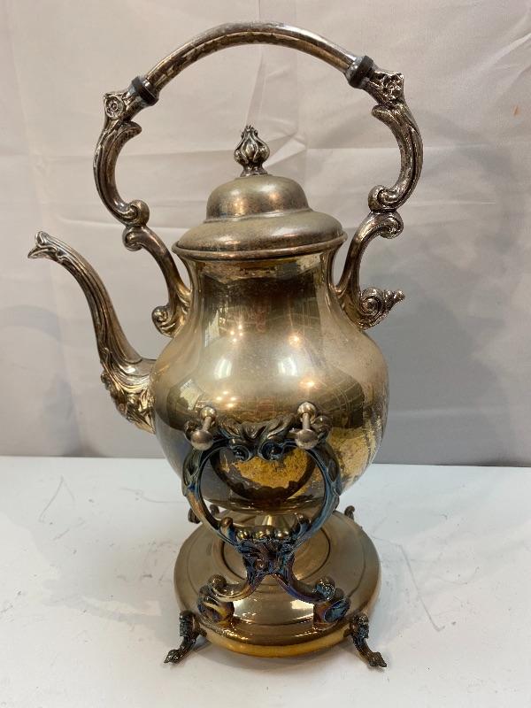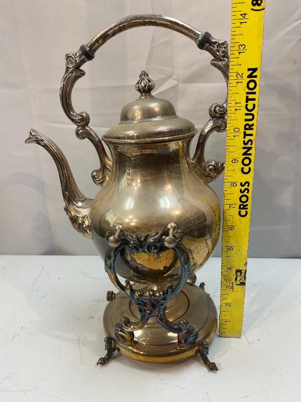 Vintage SHERIDAN Silver on Copper Coffee Tea Pot with Warming Stand YD#022-0367