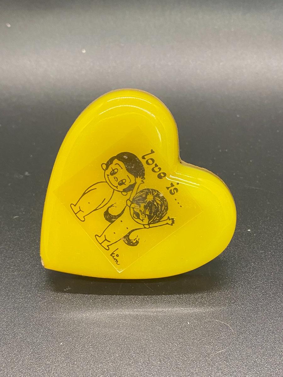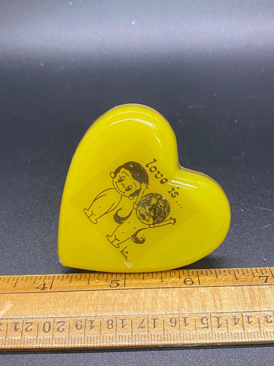 Vintage LOVE IS.. yellow heart shaped night light. Still works. Has an orange glow. In good vintage condition.
