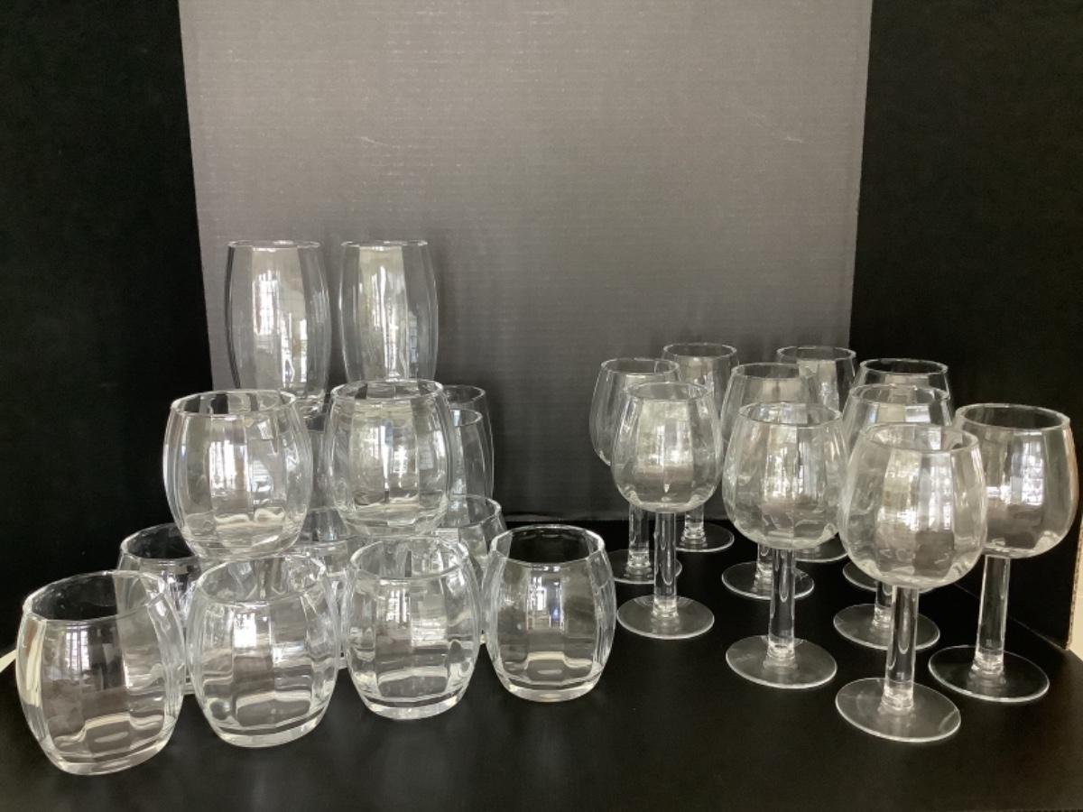 10 wine measuring 7.5” high , 8 high ball measuring 6” high , and 9 lowball measuring 4” high