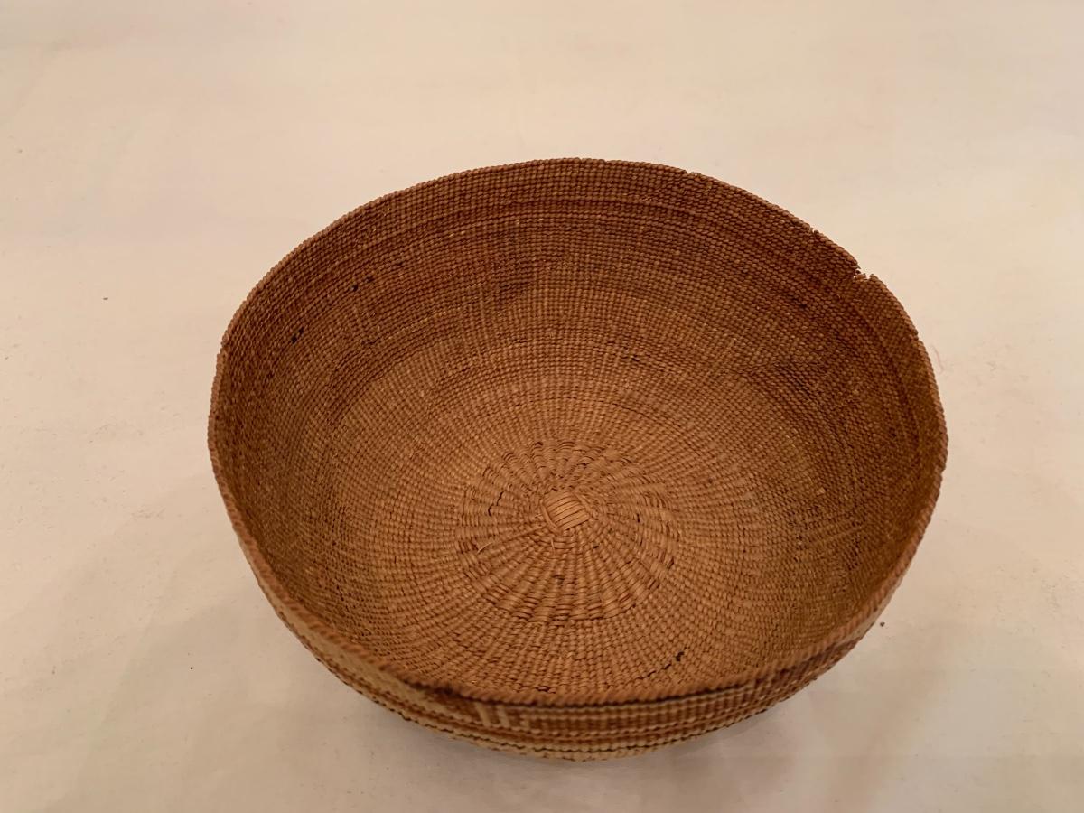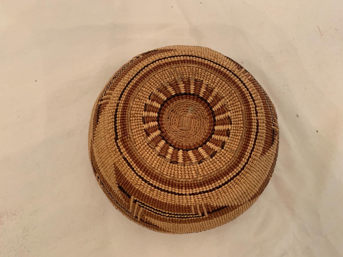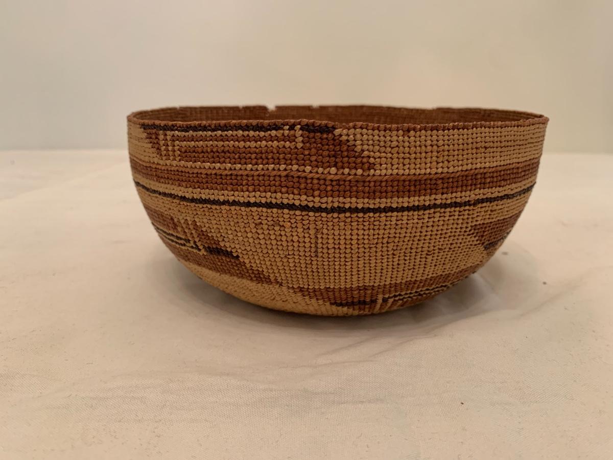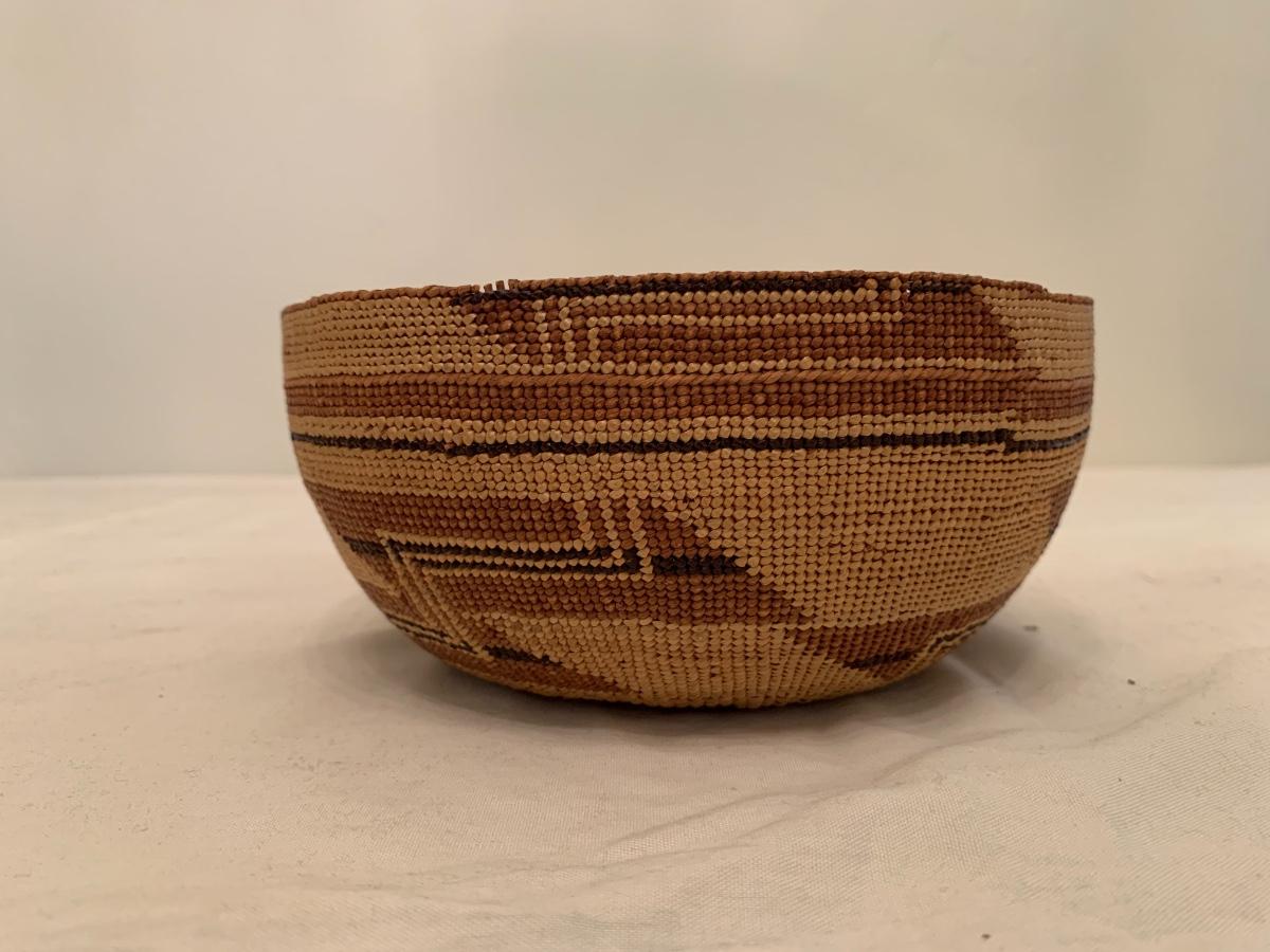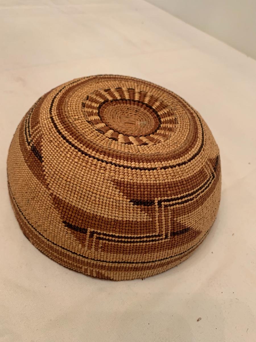Northern California (Washoe? Hupa?) Native American tribal woven basket with 3 colors woven into the geometric design