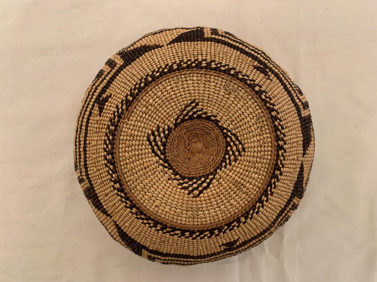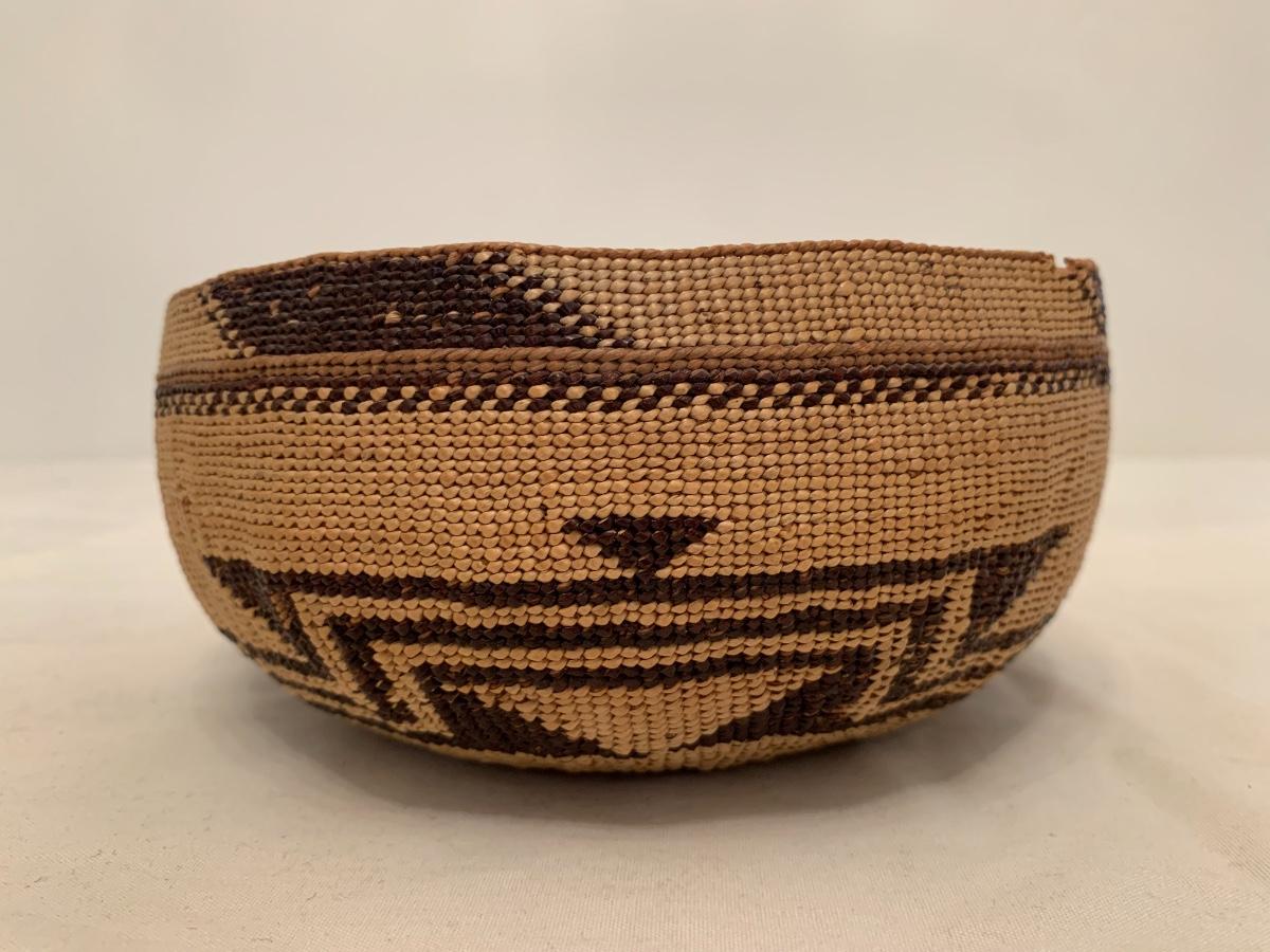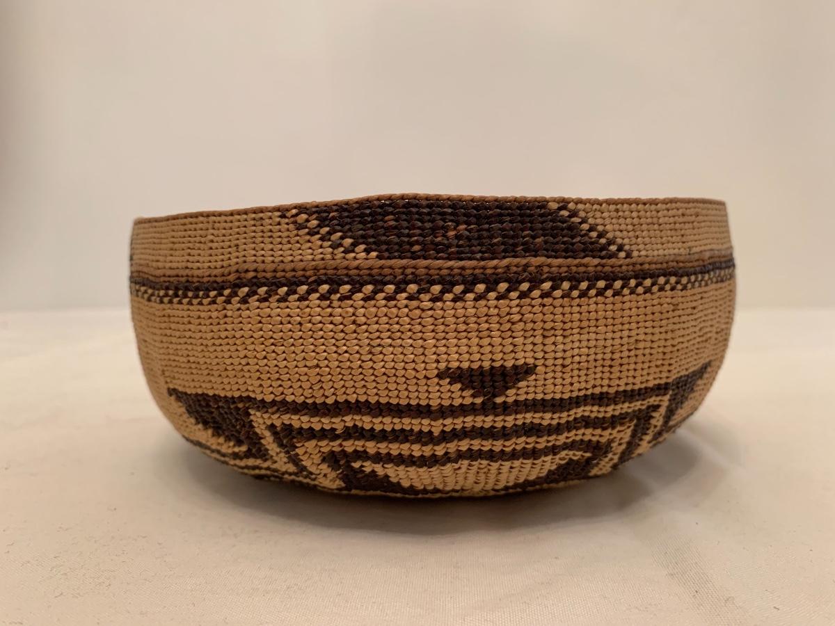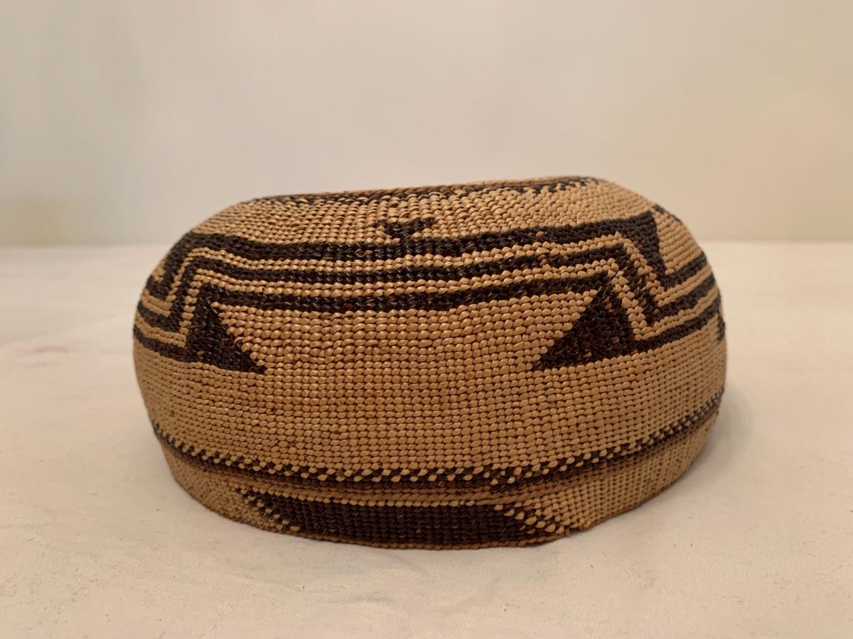 Northern California (Washoe? Hupa?) Native American tribal woven basket with 2 colors woven into the geometric design