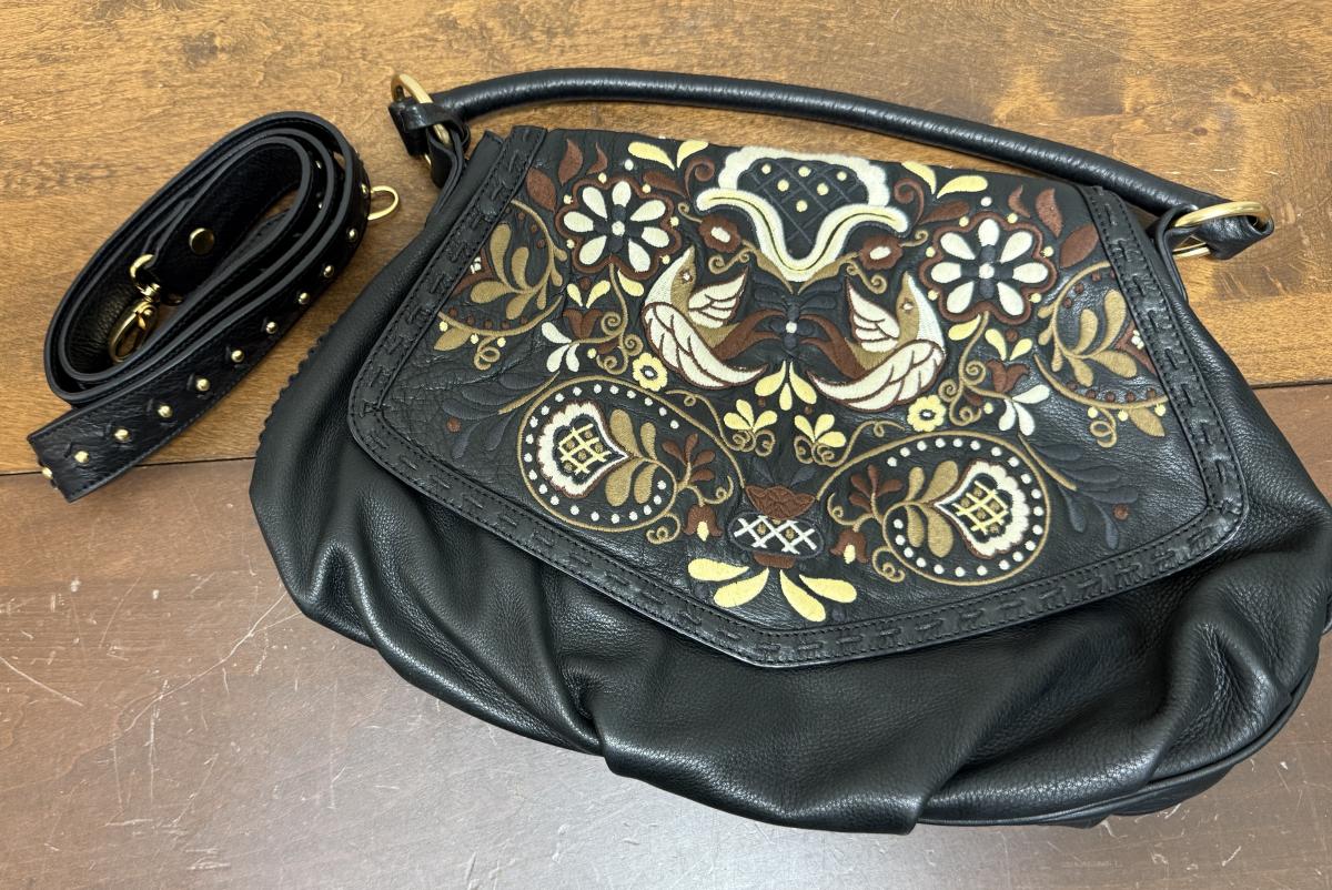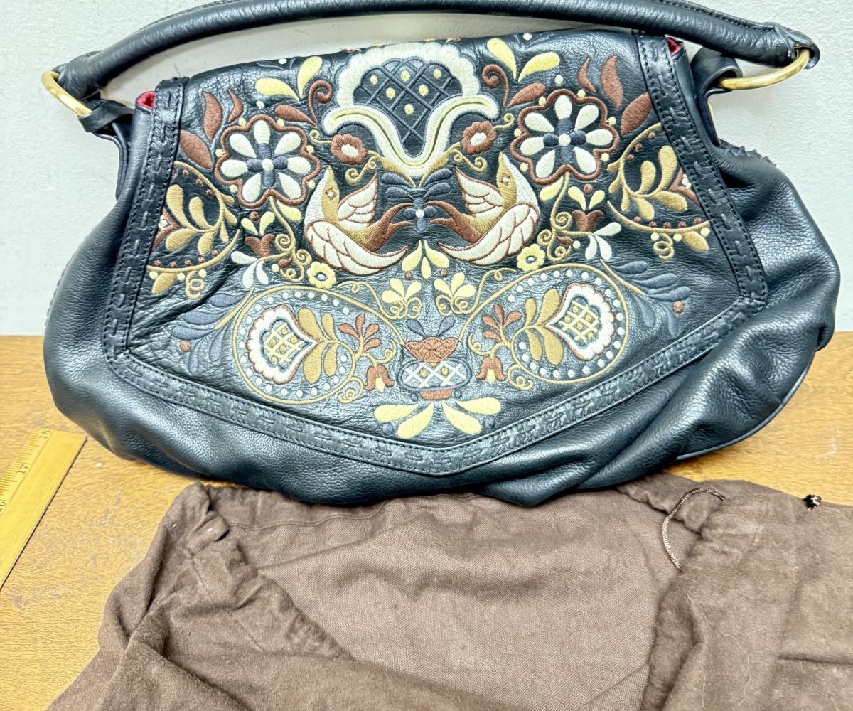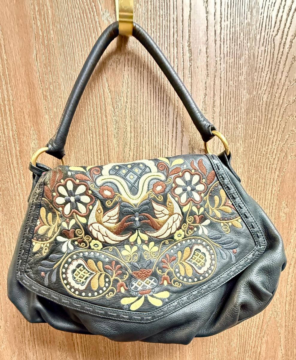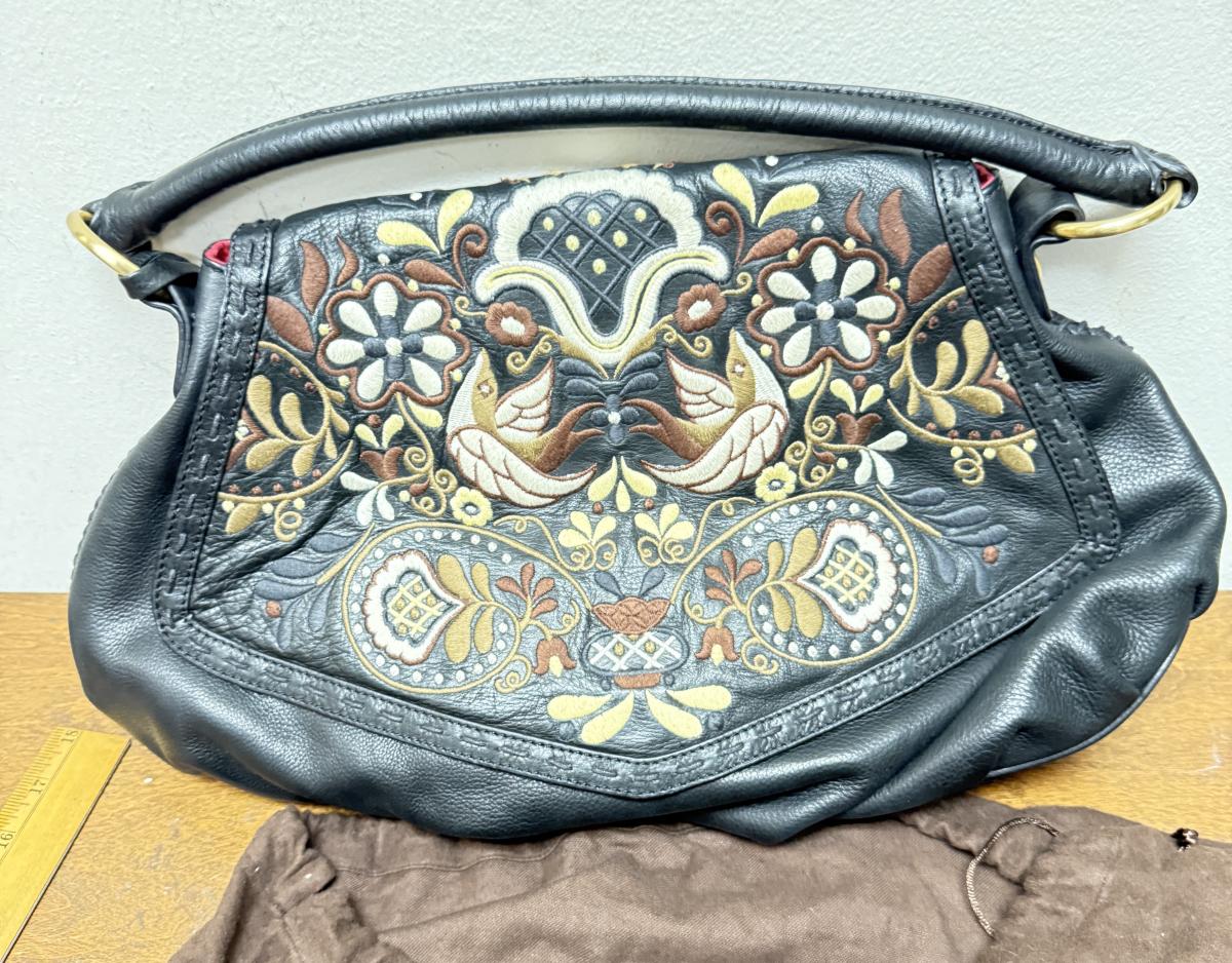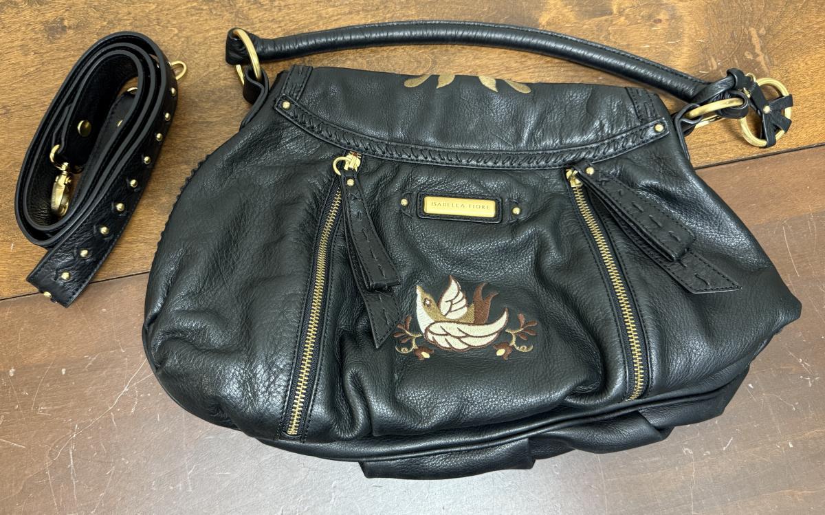 Isabella Fiore Leather Floral Embossed Shoulder Bag Purse