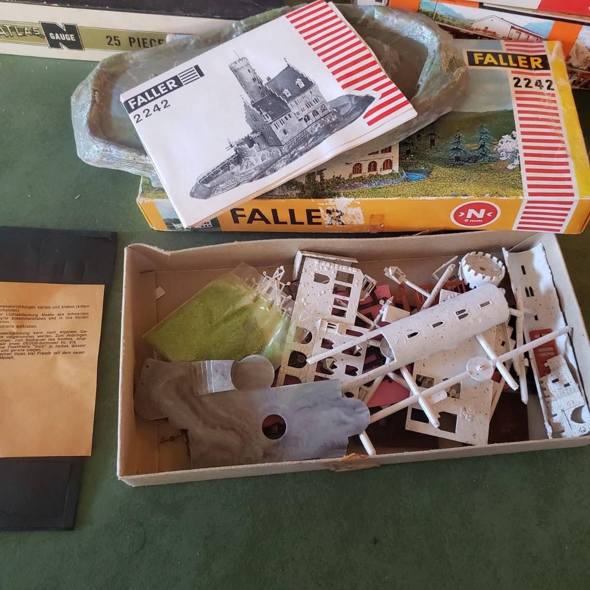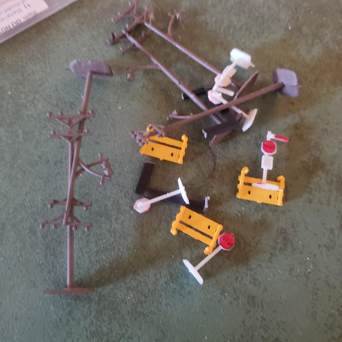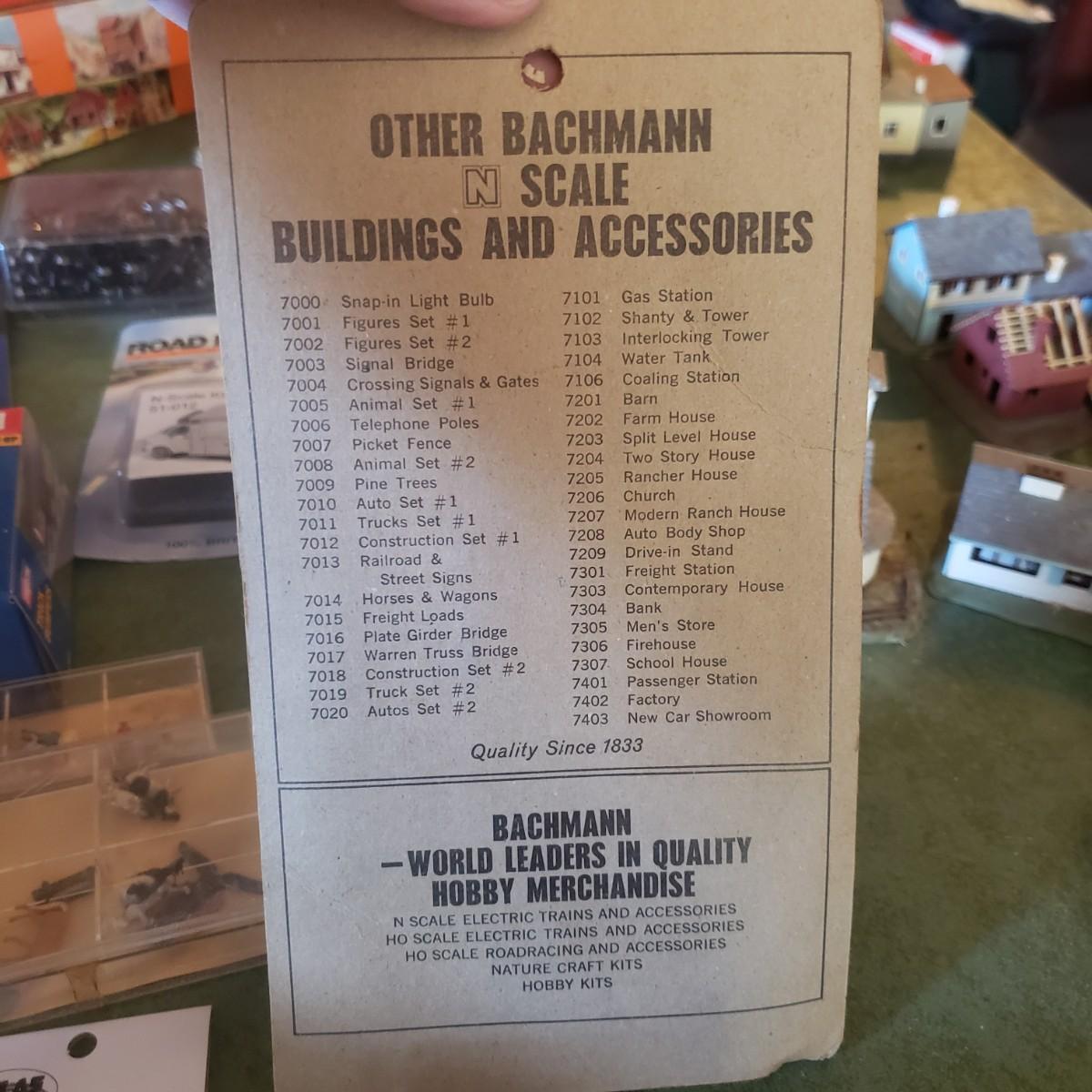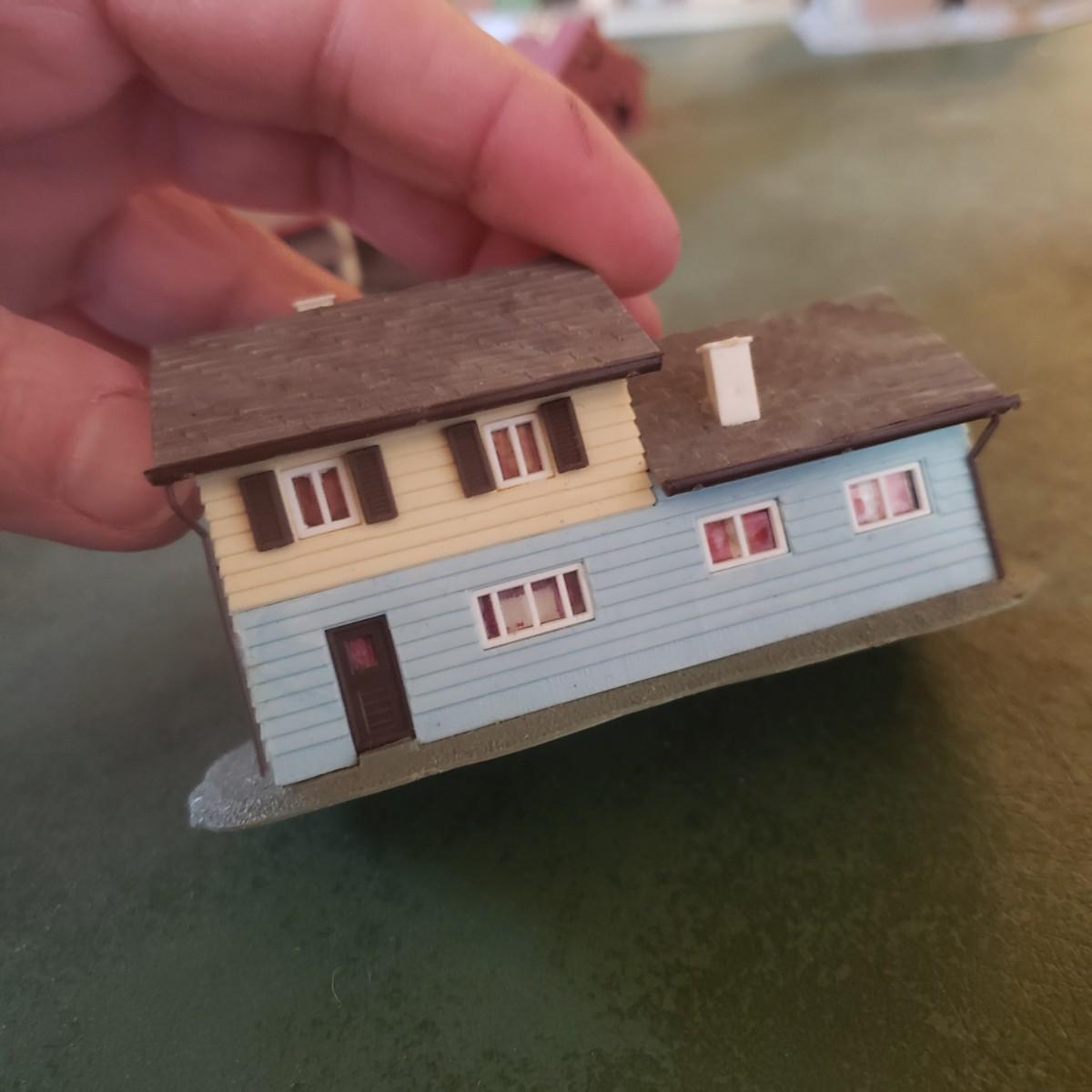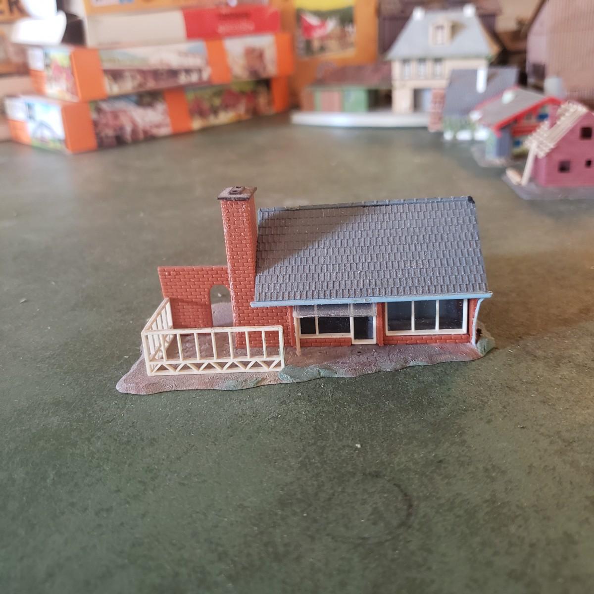 This N scale model scenery has a lot to choose from some! There are some vintage house/building sets, still new, ready to put together! The largest house measures approximately 6" x 3" x 2"H. There is so much, we let the pictures do the explaining on this lot!