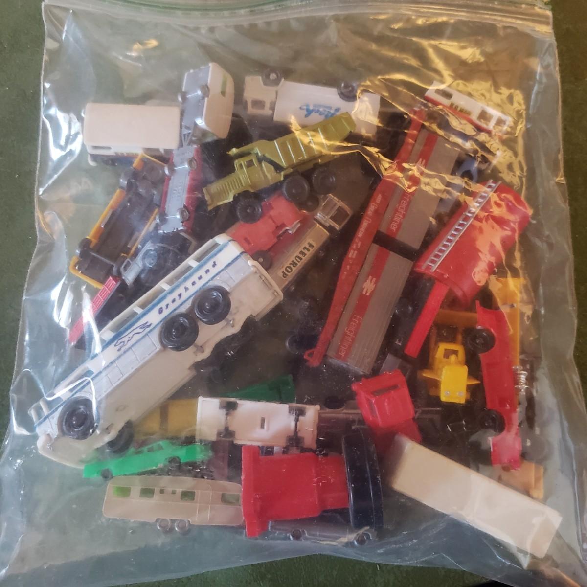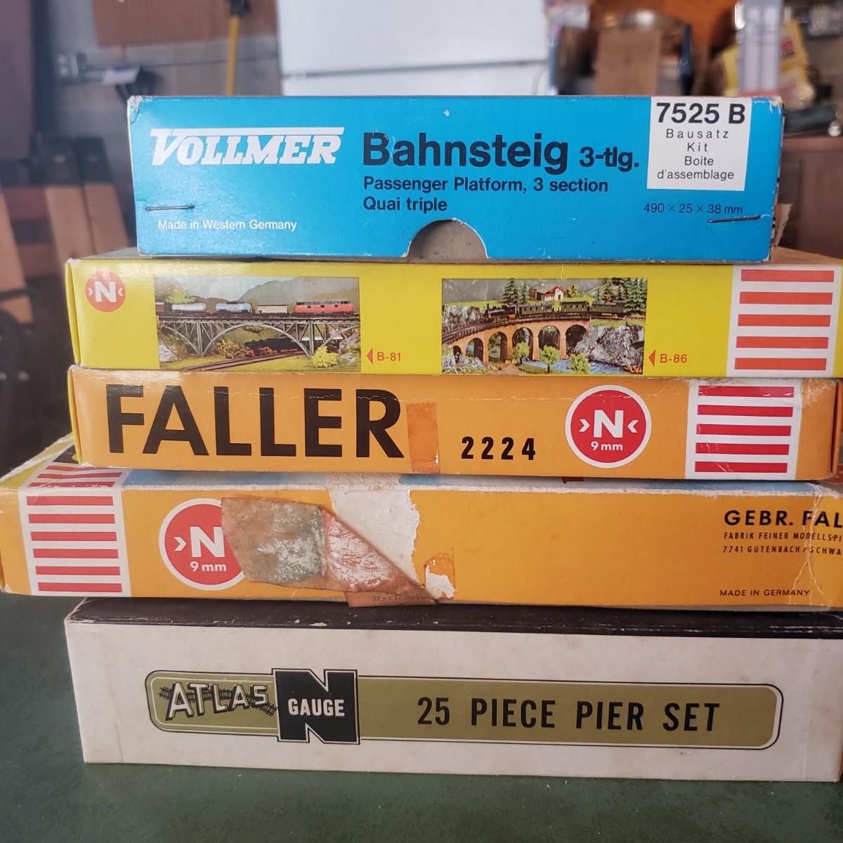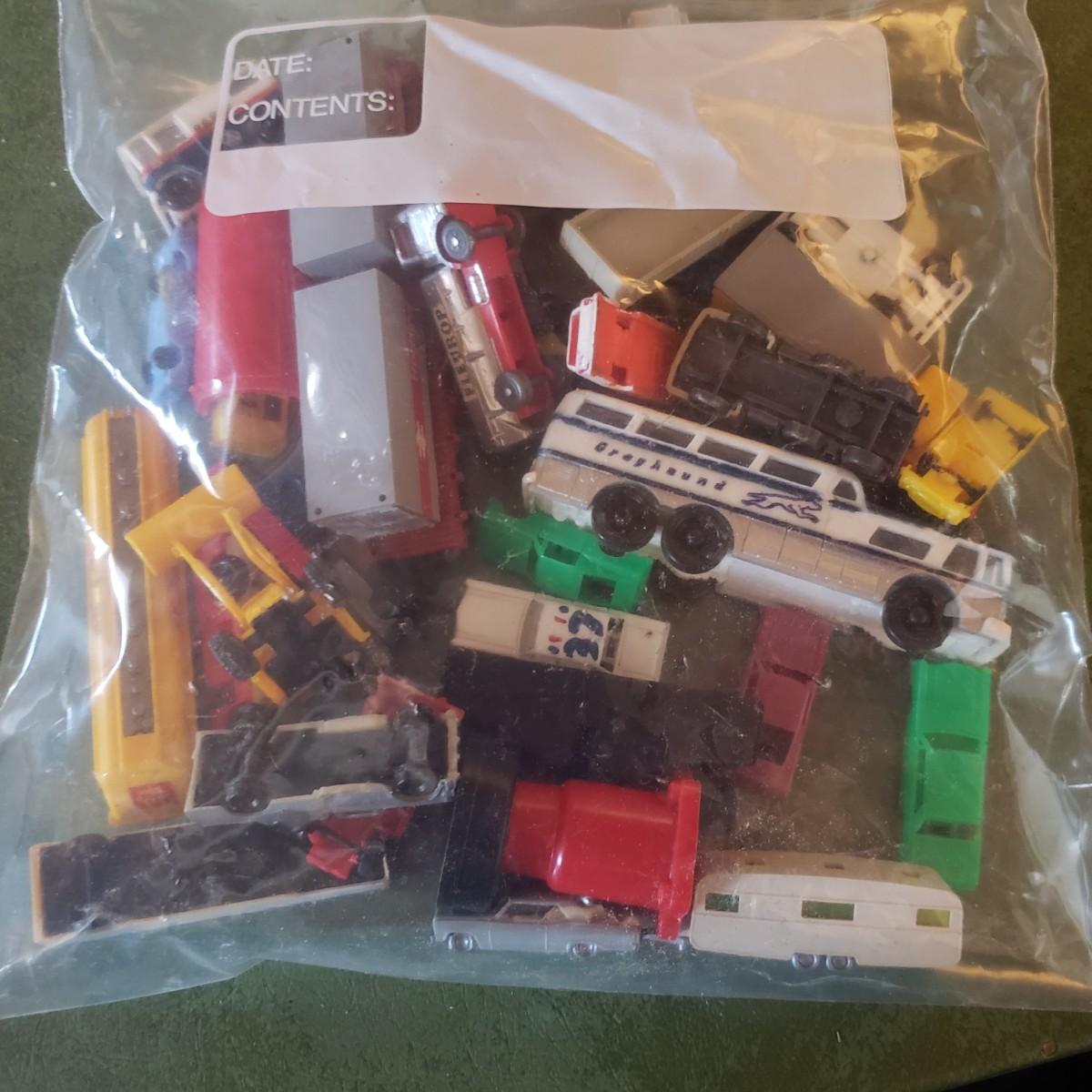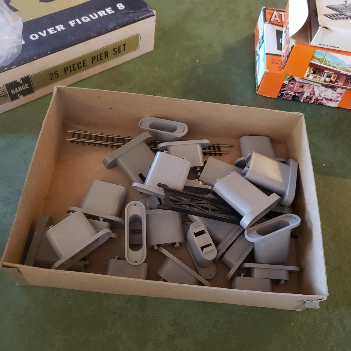 This N scale model scenery has a lot to choose from some! There are some vintage house/building sets, still new, ready to put together! The largest house measures approximately 6" x 3" x 2"H. There is so much, we let the pictures do the explaining on this lot!