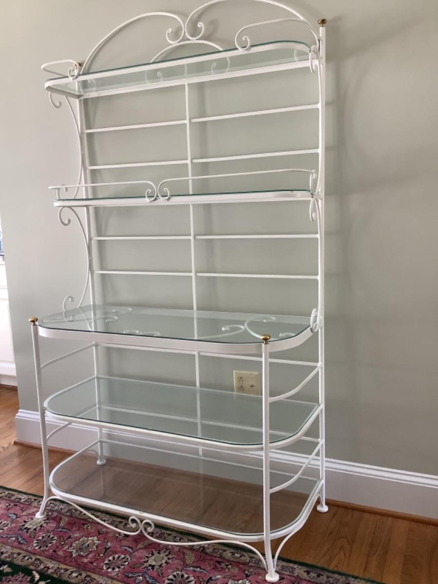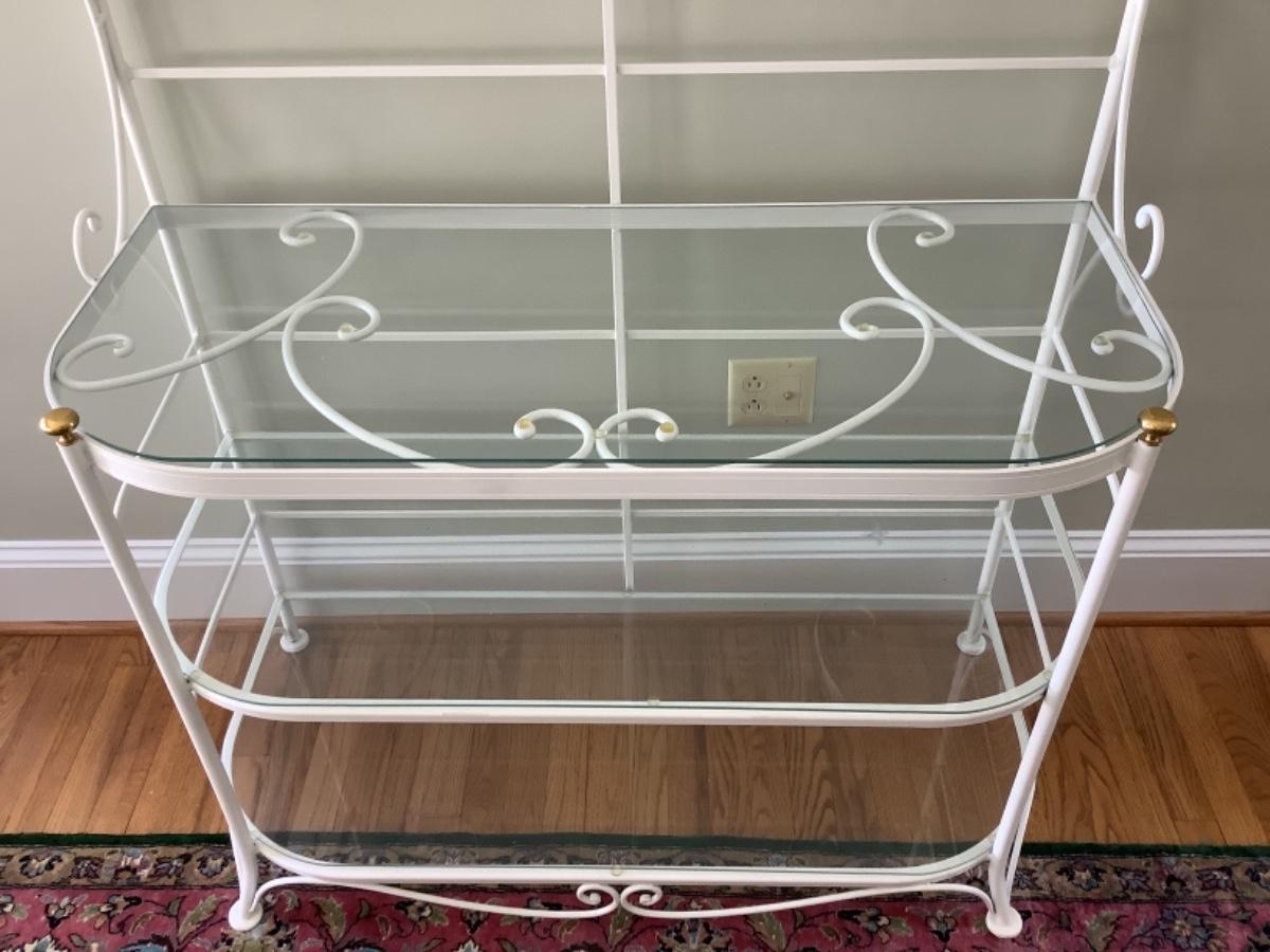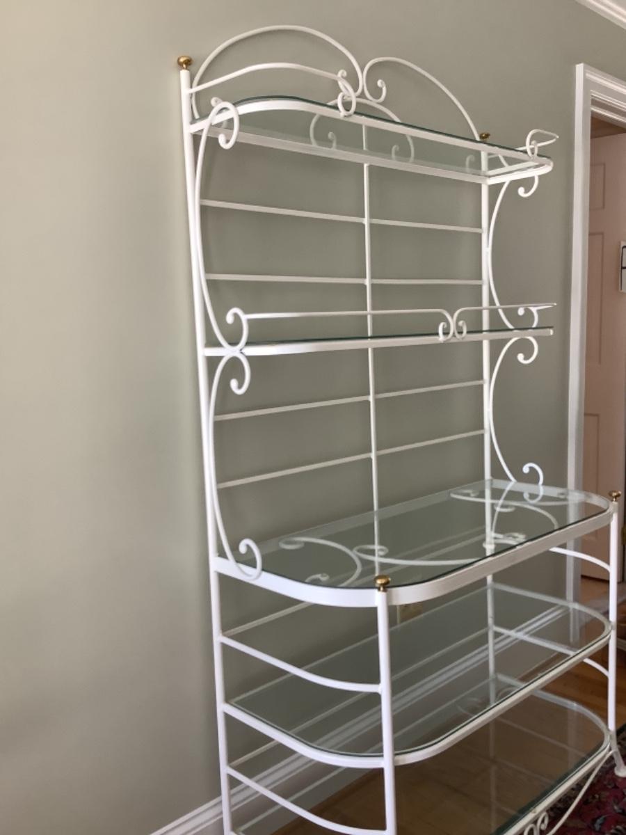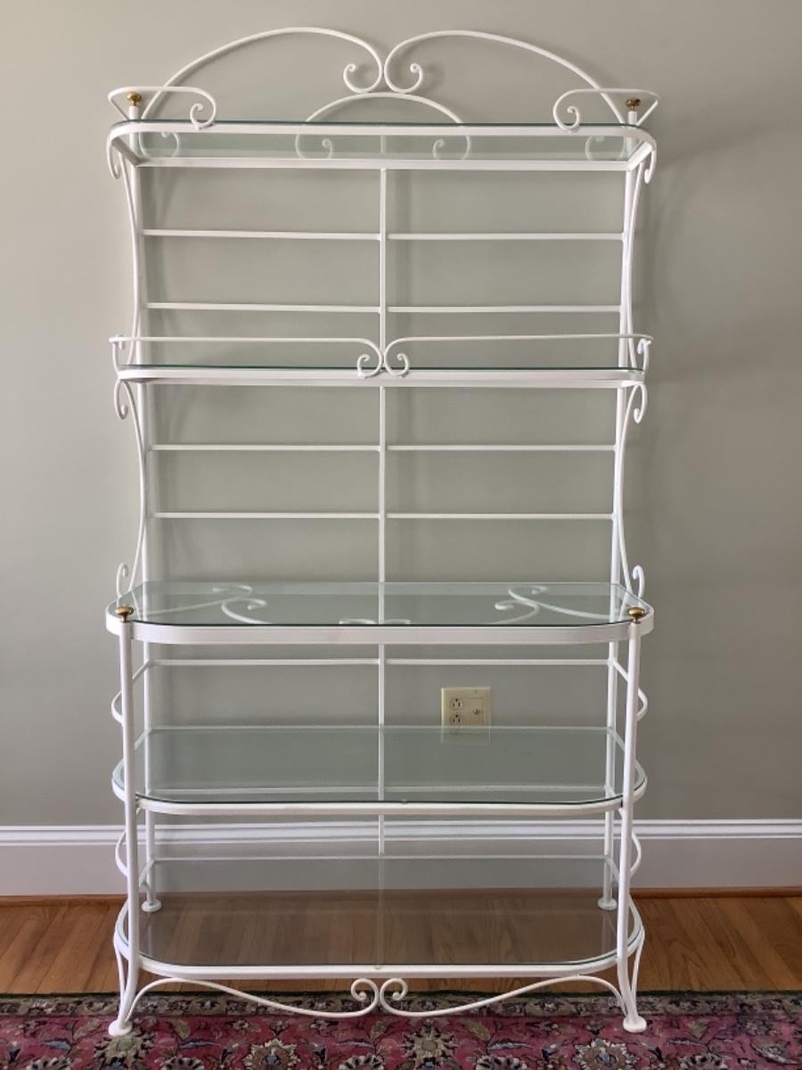 N1018 Painted White 5 Shelf Bakers Rack with Glass Shelves
