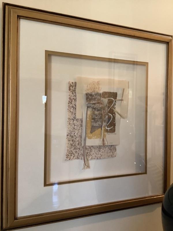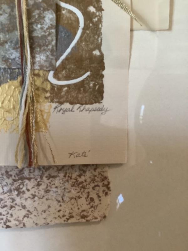 Signed collage art by Kate “Royal Rhapsody” measuring 20.5” wide x 21