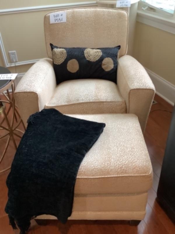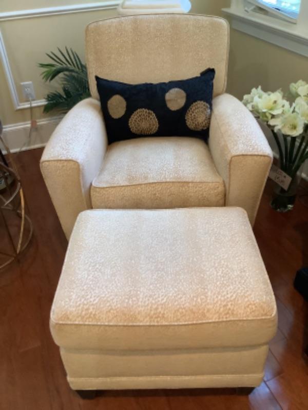 N1551 Cream Colored Texture Upholstered Ethan Allen Chair and Ottoman