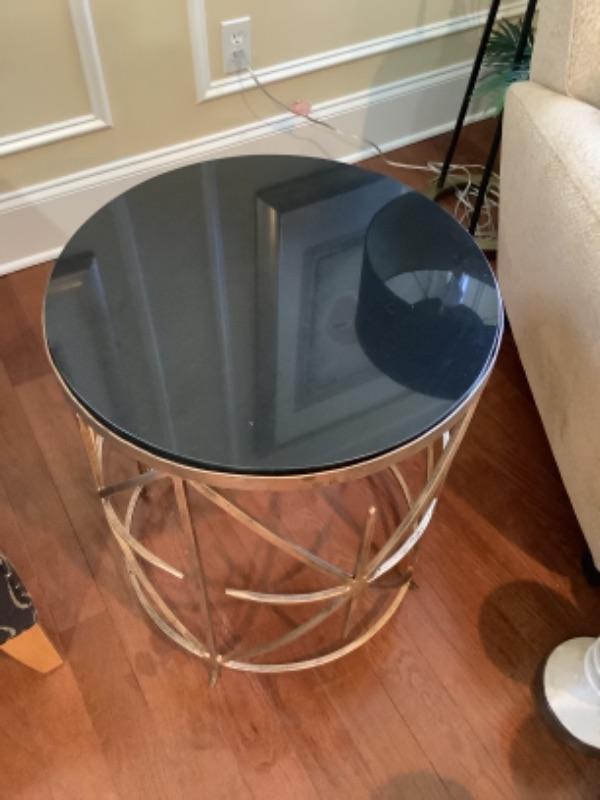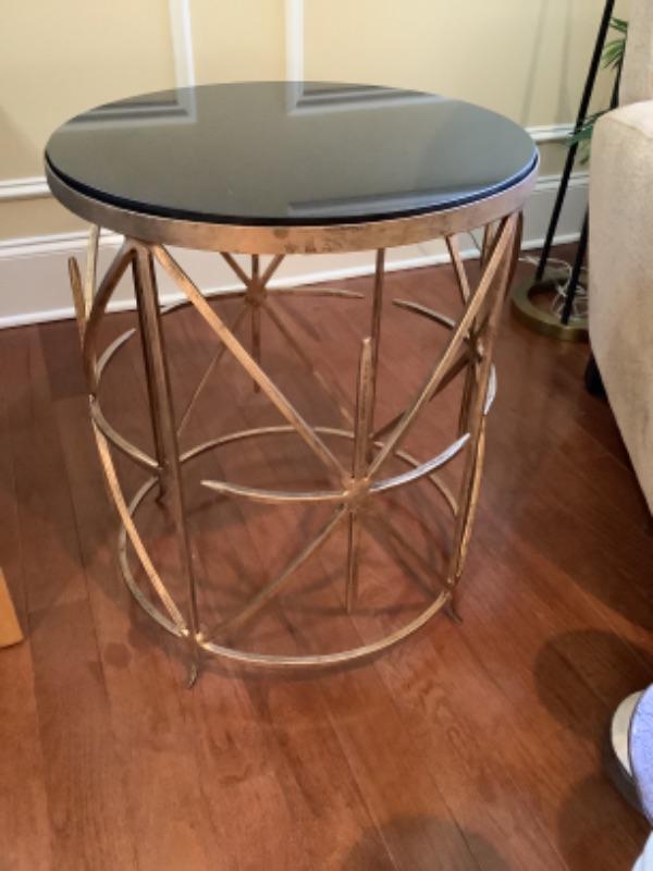 N1552 Gold Metal and Black Granite/ Stone End Table