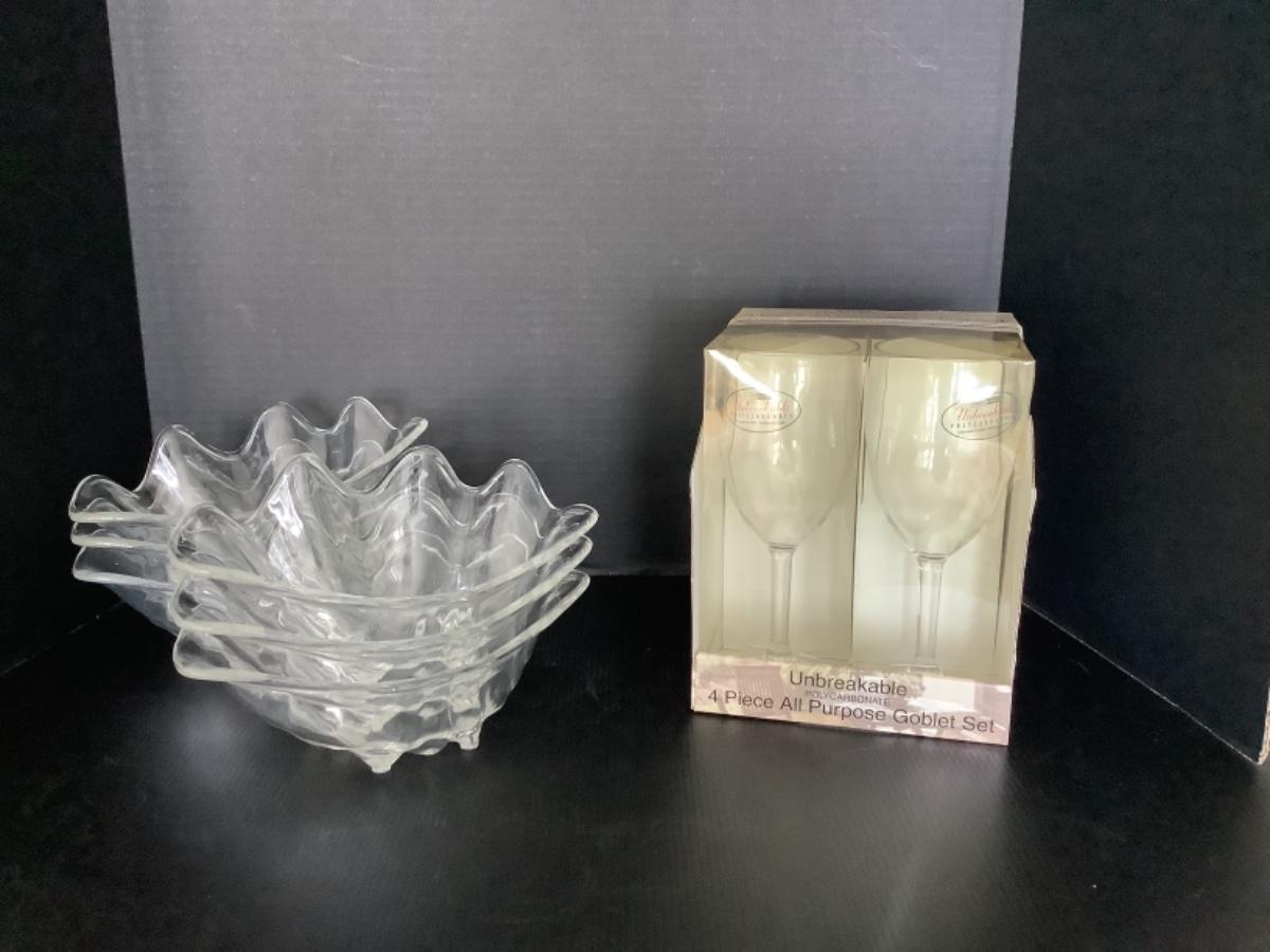 N984 Set of 6 Acrylic Shell Serving Dishes and 4 Goblets