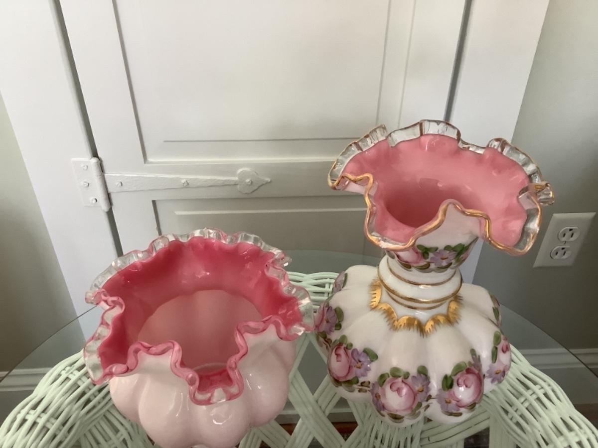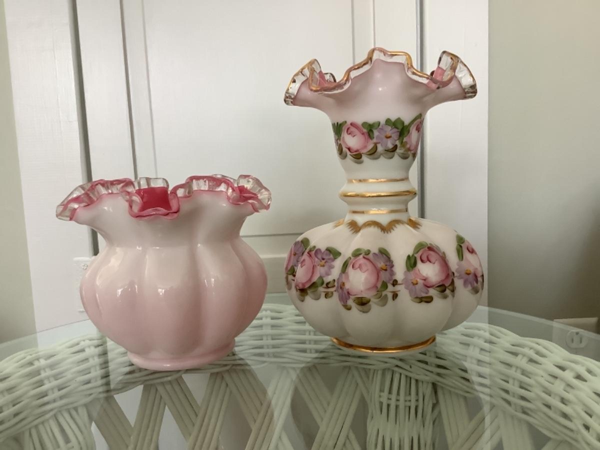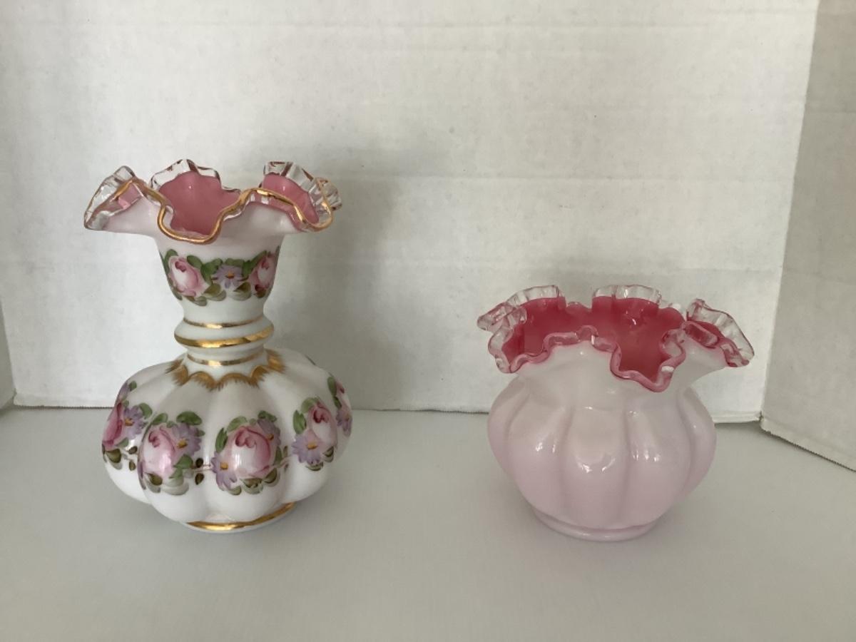N987 Pair of Fenton Hand painted Ruffled Vases