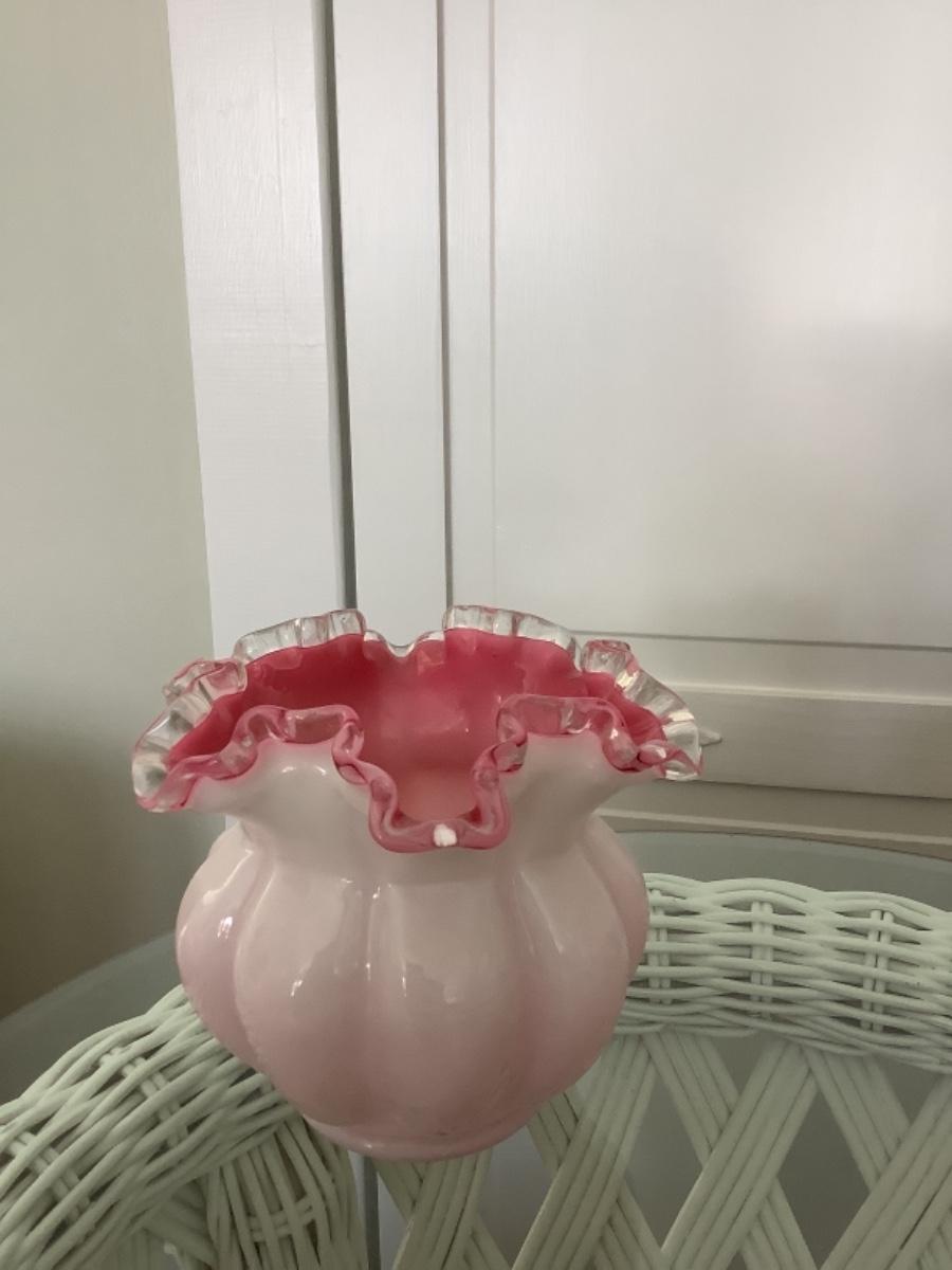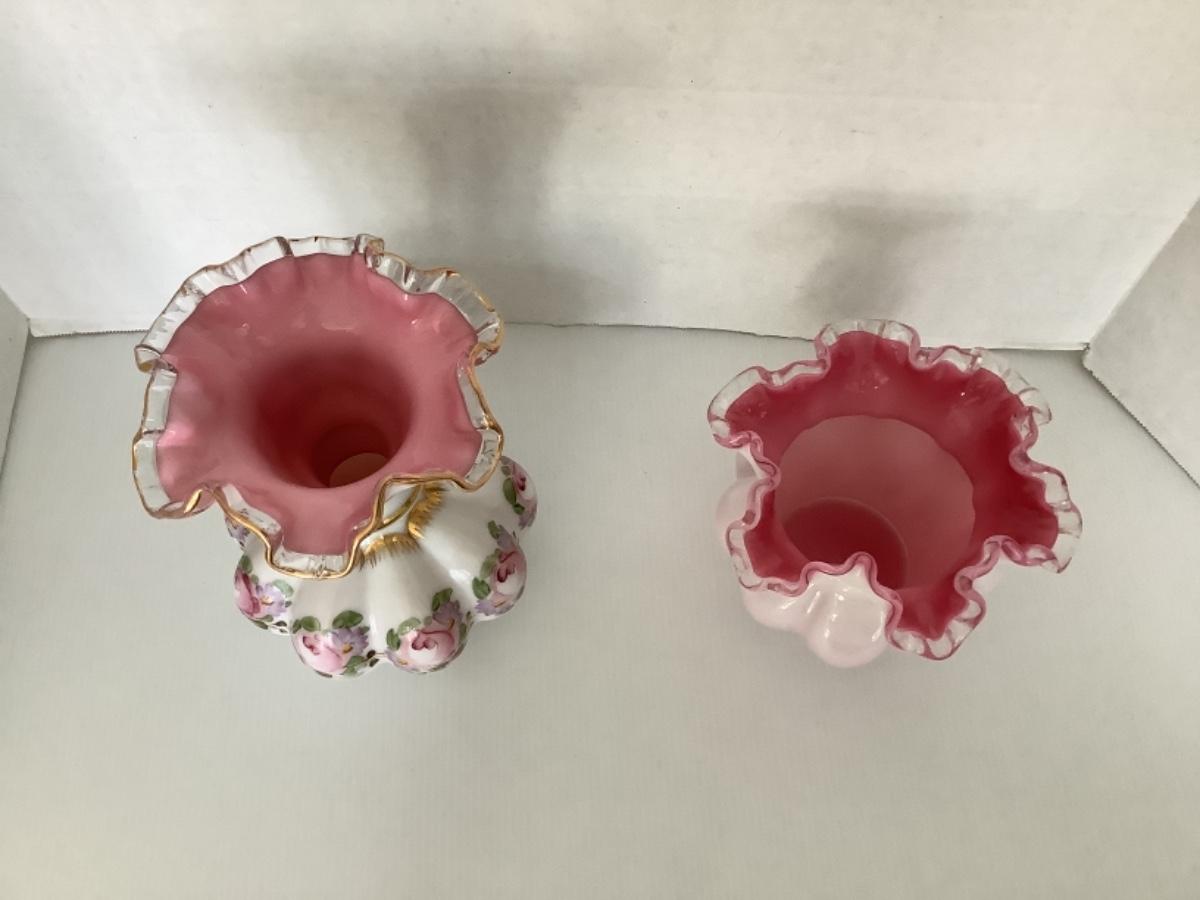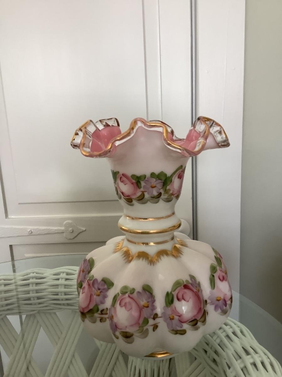 N987 Pair of Fenton Hand painted Ruffled Vases