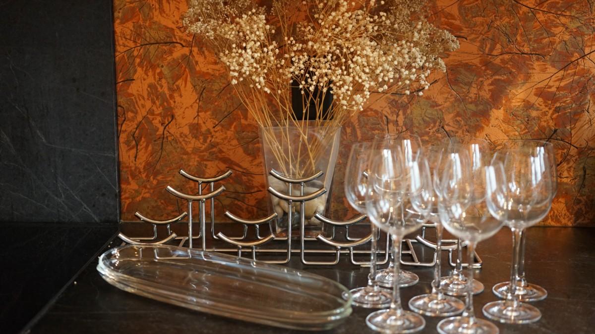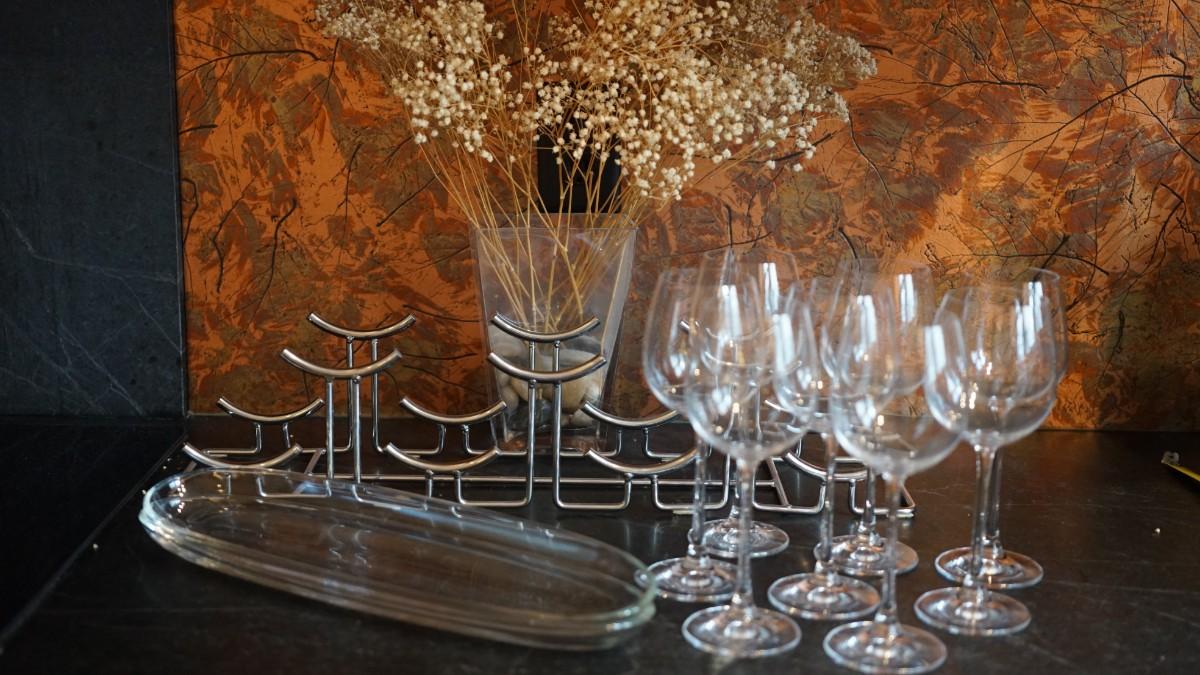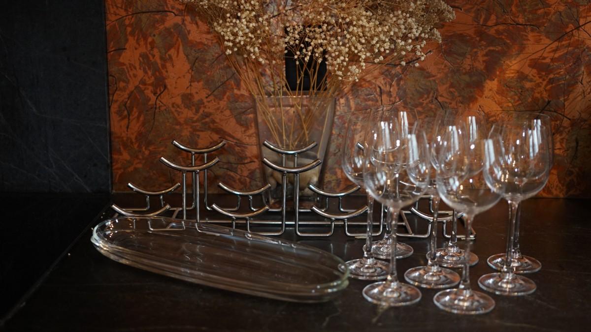 NACHTMANN WINE GLASSES 12 OZ SET OF 6 , CHROME WINE BOTTLE HOLDER