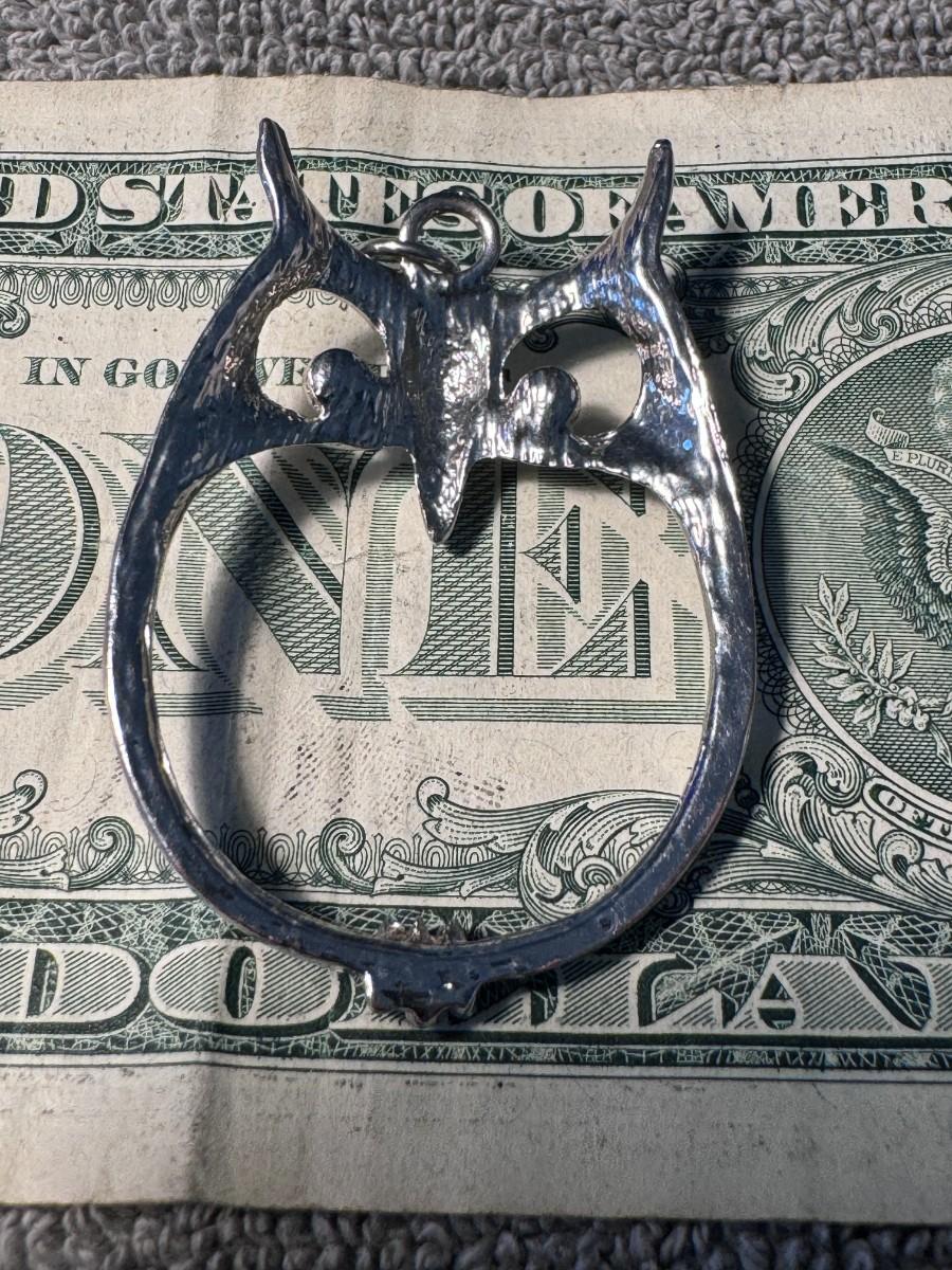 Reversible Owl Pendant crafted by Nadin Novoa. This unique piece of handmade jewelry is designed with specific details and carries symbolic meaning.