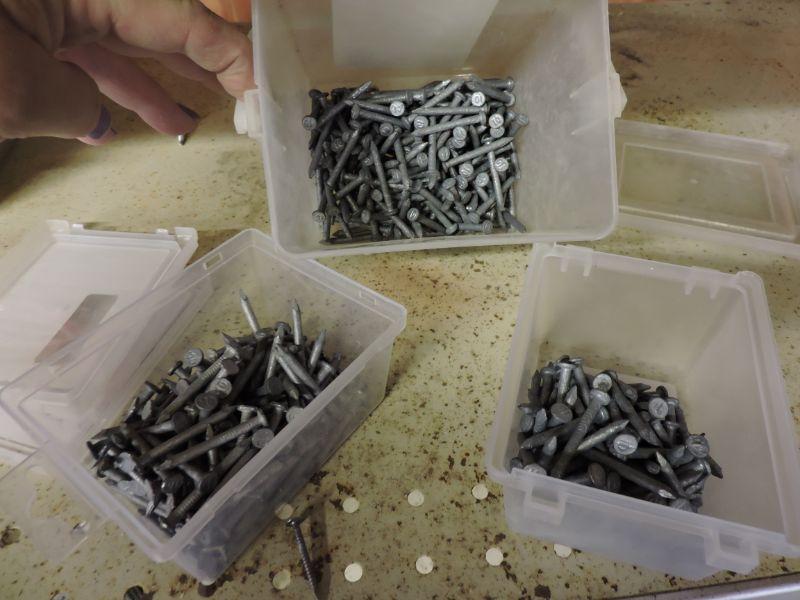 3 boxes of nails and a hammer. Please read Terms and Conditions before placing a bid. Pick up is Friday, October 25th between 4 and 7, and Saturday, October 26th between 9 and 1. Please bring boxes, tools, and muscle to help move your items. Props included in photos are not included in listing. All measurements are approximate.