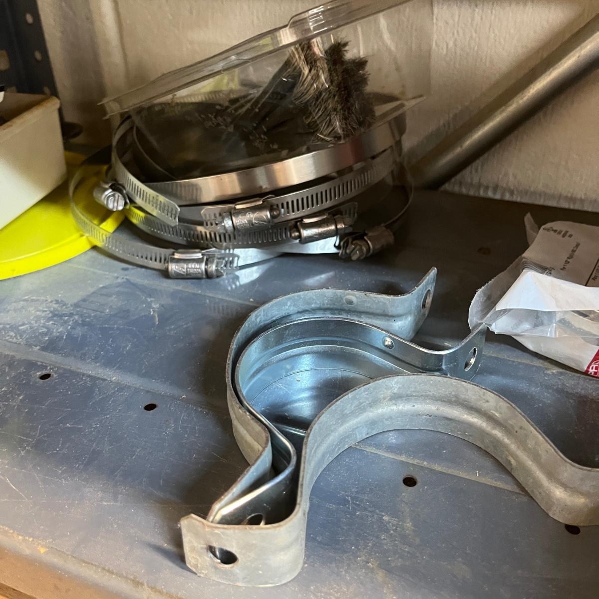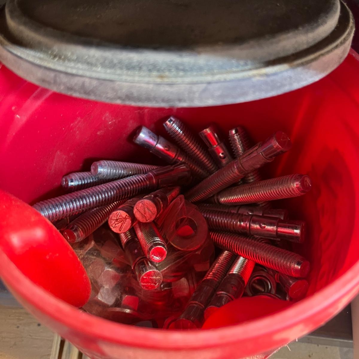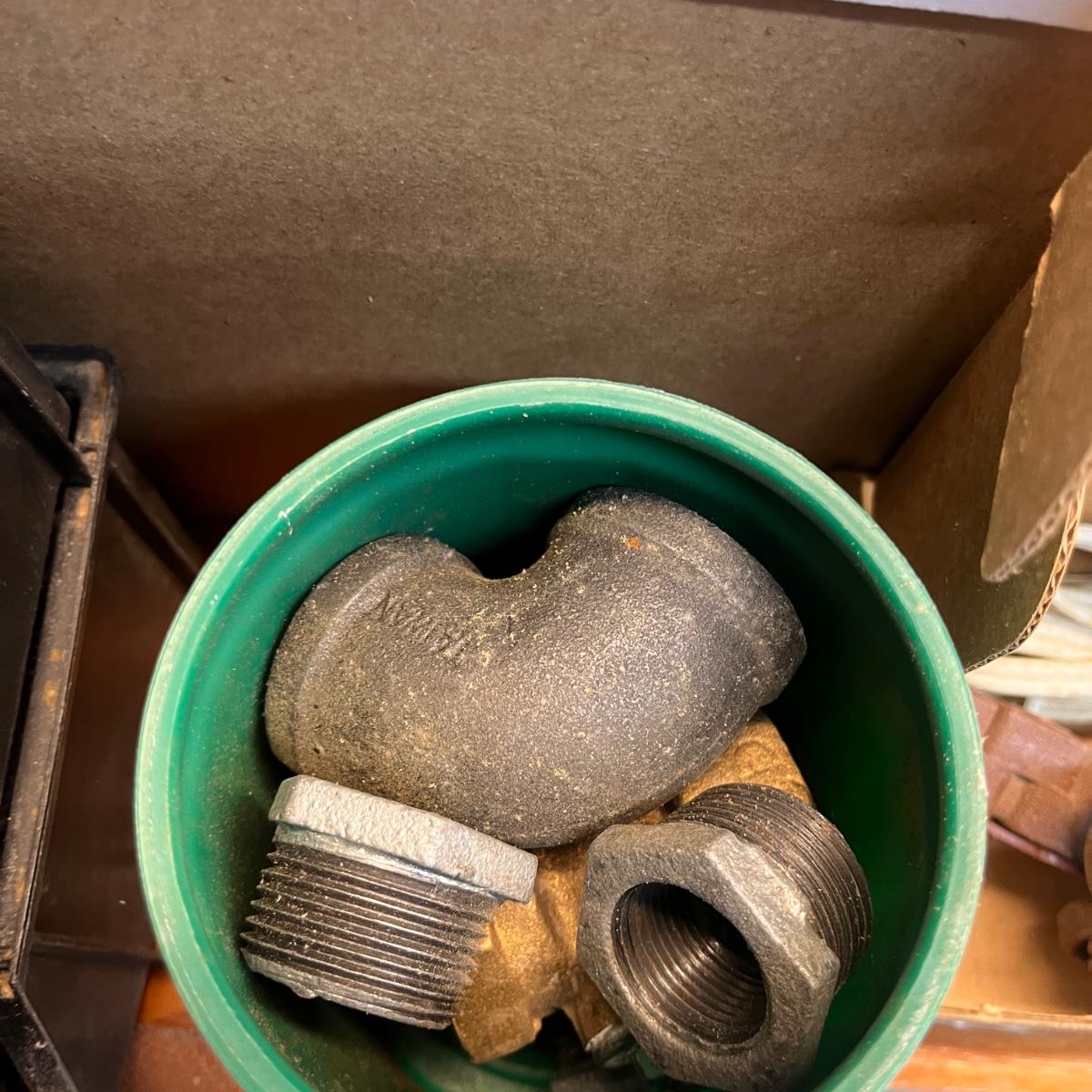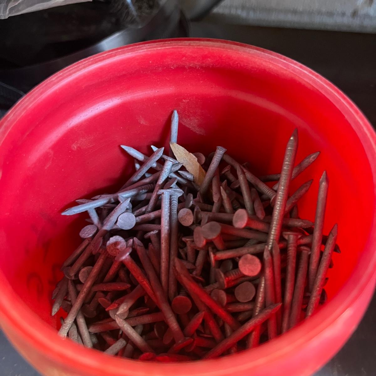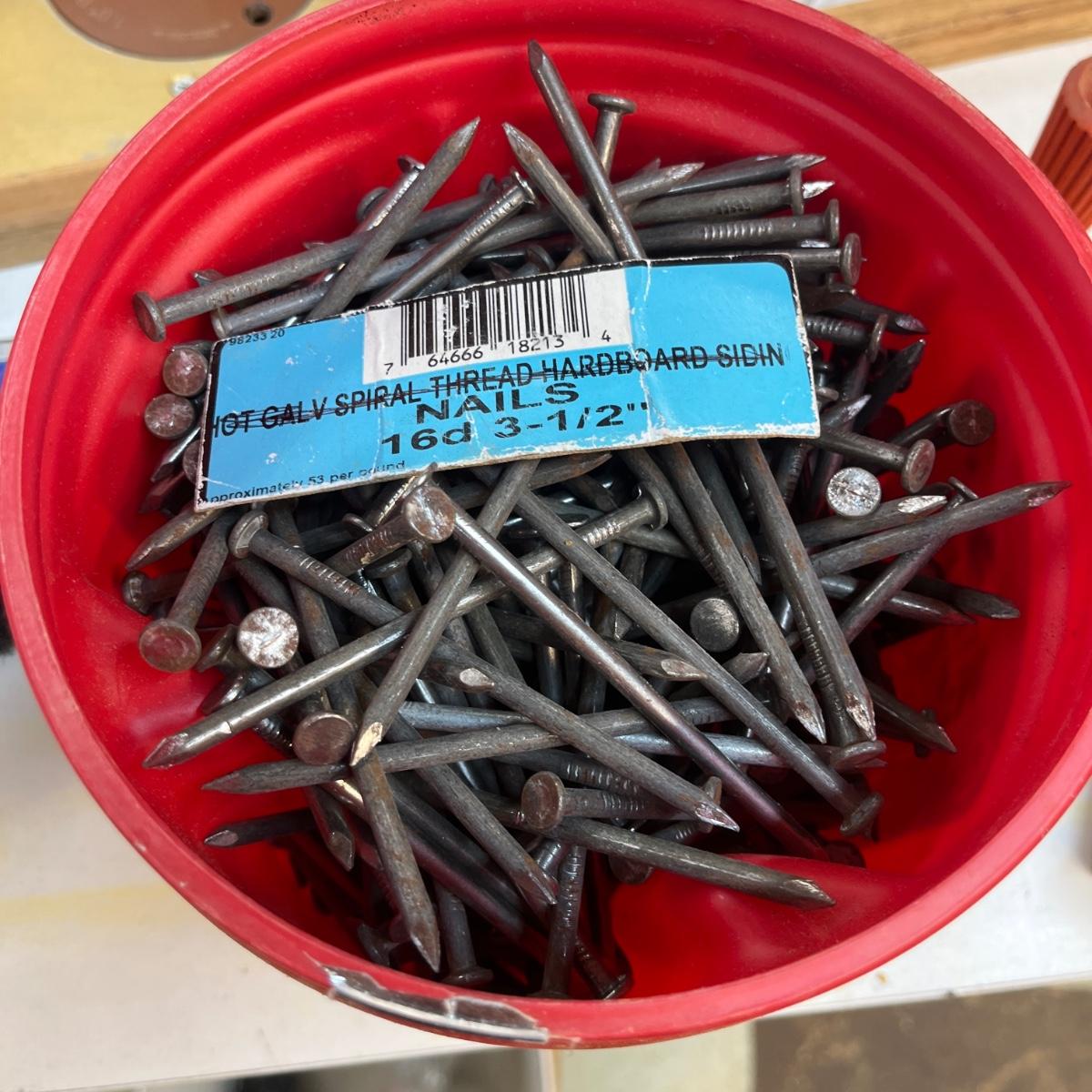 Lot includes a selection of nails, screws, wheels, hinges, screws, staples, clamps and more. Shelf unit in images is not included.