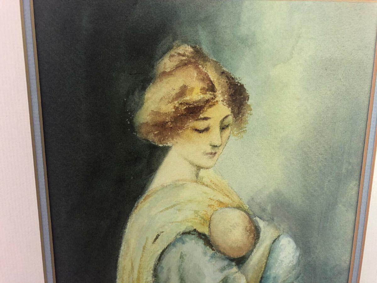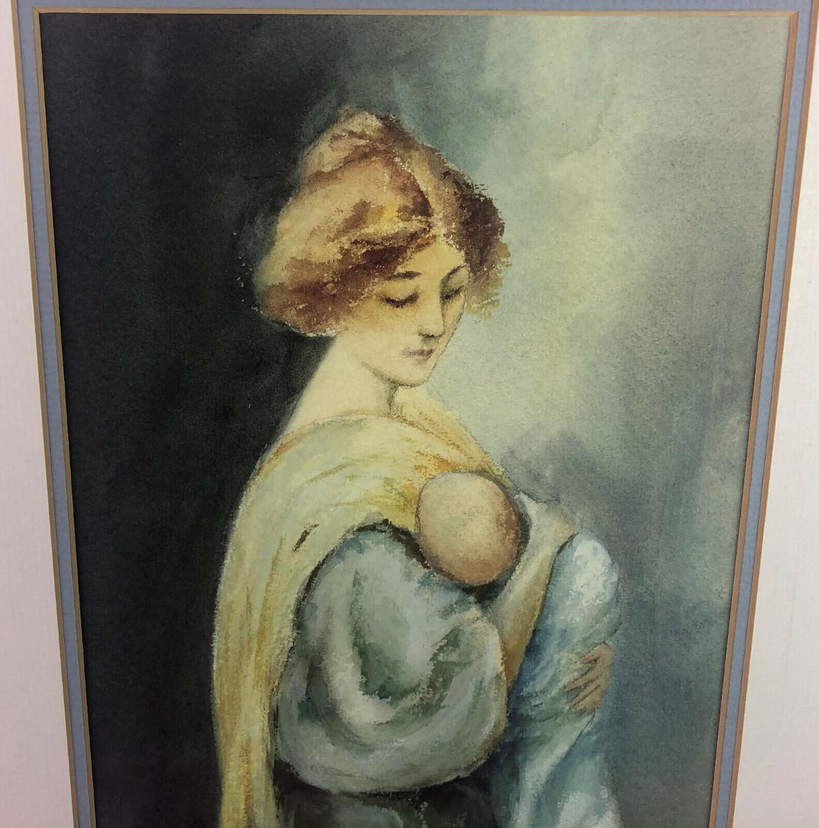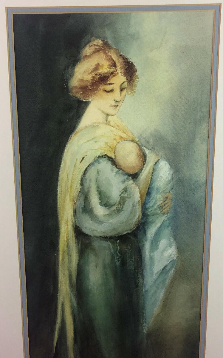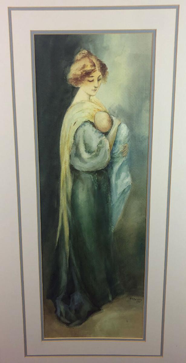 naive original signed watercolor & gouache MOTHER and CHILD 1911 DETWILER