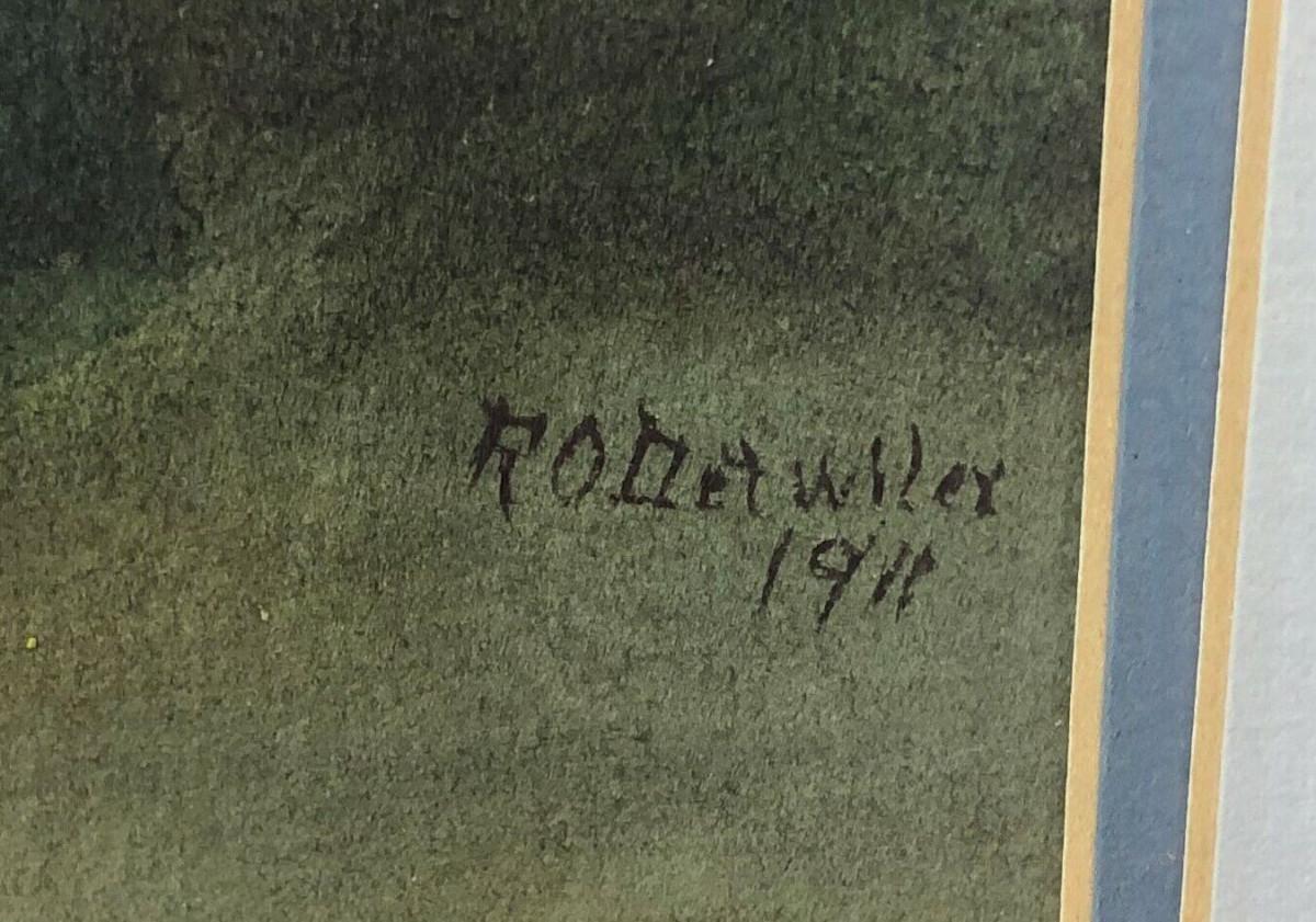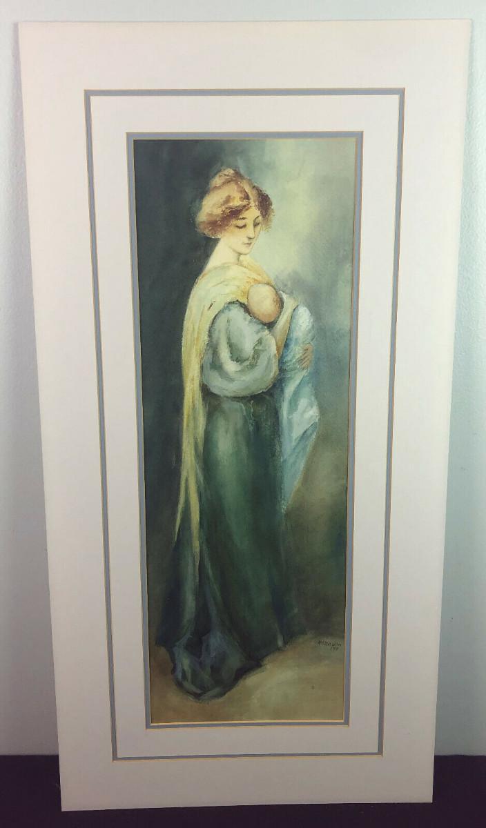 In excellent condition here is an estate find..This naive work of a Mother and Child is done in watercolor and I believe gouache? By an artist in the Middle West..Signed and dated by A.O. Detwiler in 1911...We will ship without frame on the 28.5" x 14.5" professionally cut matte..The image measures 22" x 8"...Offered with no reserve...
