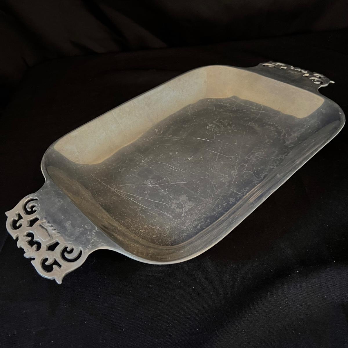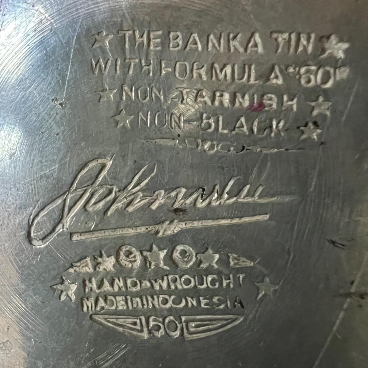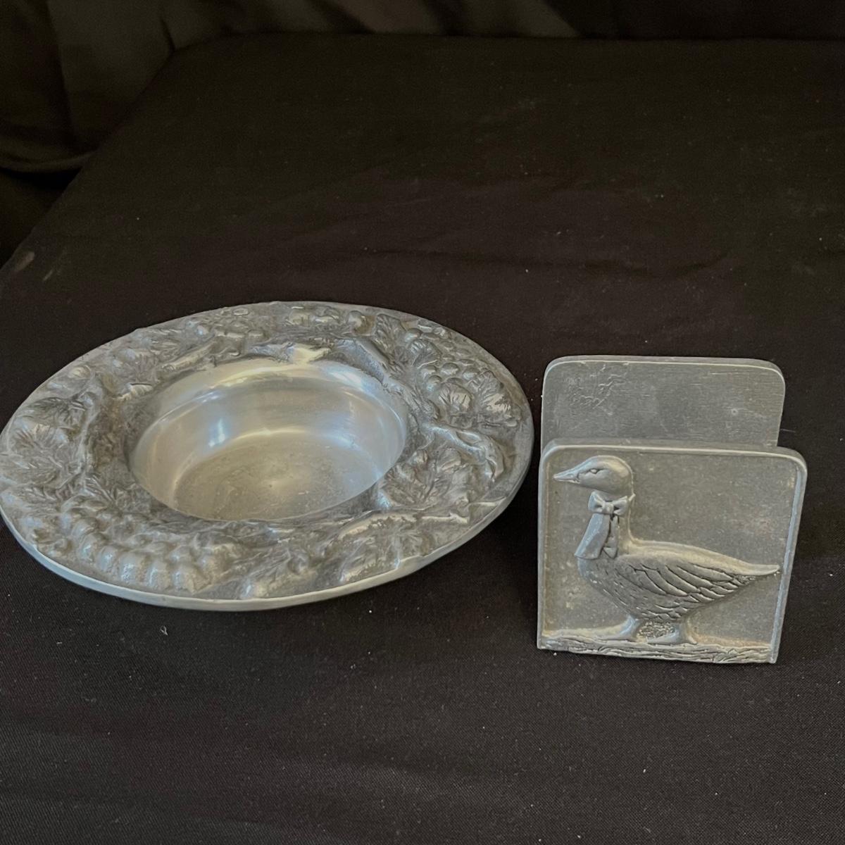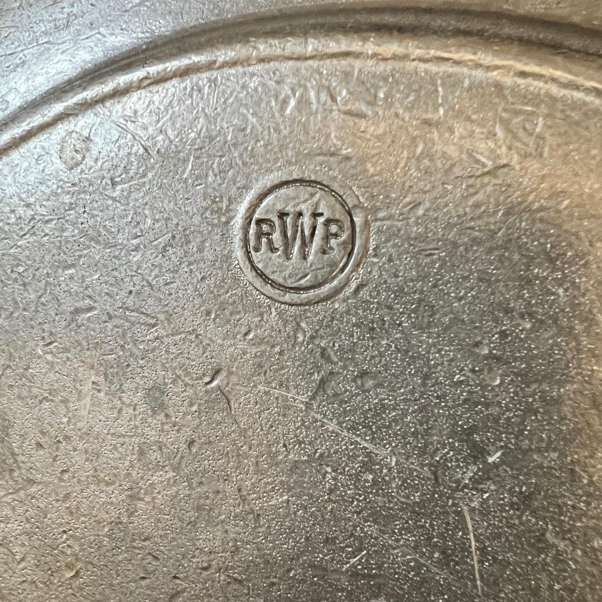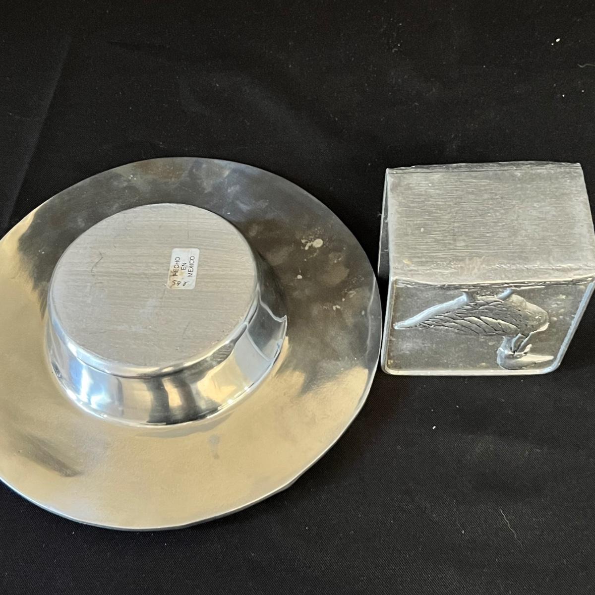 Two large platters, a cake stand and numerous small bowls make up this lot of mixed metals. Some items are RWP pewter, others appear to be heavy aluminum alloy, see images for more information. Please note the platters have some scratches.