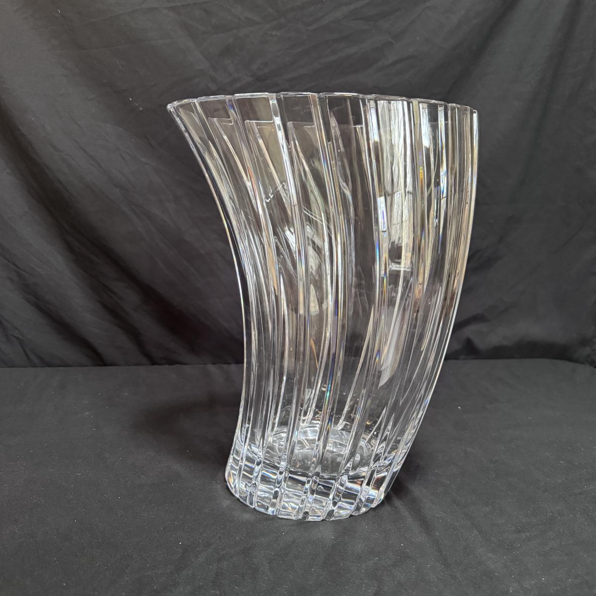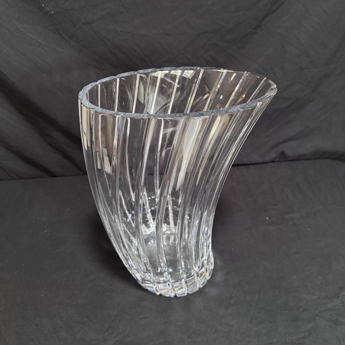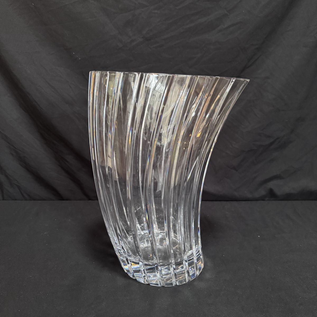 This lot includes one large Nambe swoop glass vase made of glass. The vase is an elliptical shape votive and is much heavier than it appears. It measures 9.5” x 6” x 12”H. Shipping available. Shipping can be costly. We suggest contacting our preferred local shipping provider, Postage Express, with dimensions and getting an estimate before bidding: (828) 255-9250 or shipping@postageexpressnc.com.