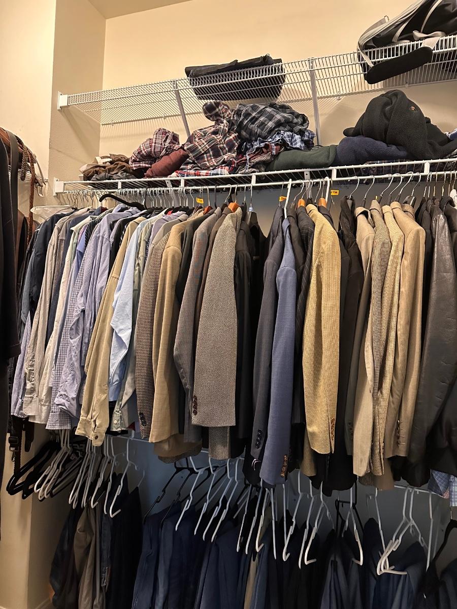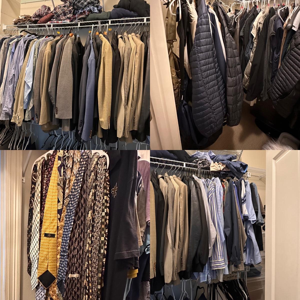 I have a large closet of Men’s clothing that will be for sale. You may make an appointment for Wednesday to come shop.