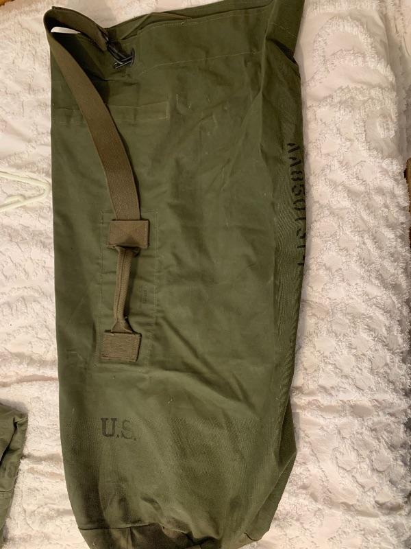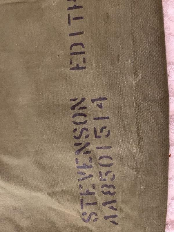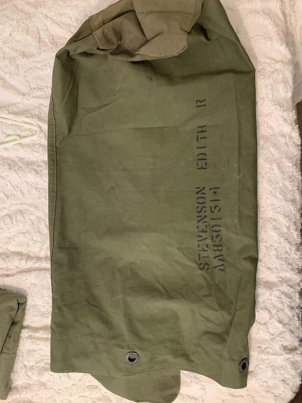 Edith Rose Stevenson enlisted in the WAAC in 1949 and was a Korean War veteran. The duffle bag has no rips or holes and wear is consistent with its’ age. There are a few minor stains (probably grease) that are shown in pictures. We have several other military uniform itens tgat belonged to Edith. Check them out!