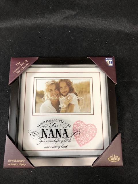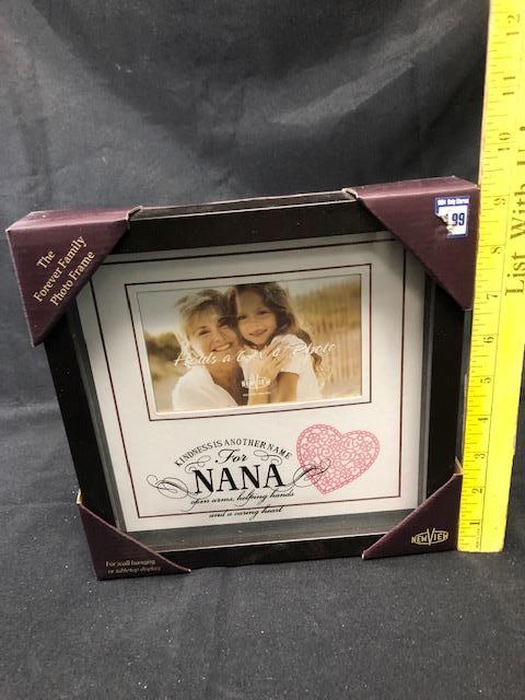 Nana picture frame. Holds a 4x6 picture. Frame itself is a 9" square. Never used, still in original box.
