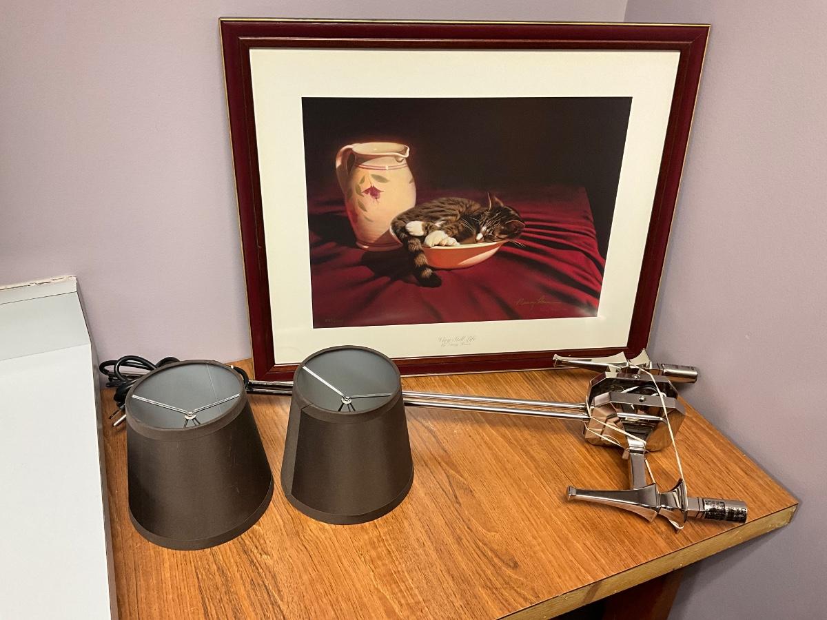 Nancy Howe “Very Still Life” Signed/Numbered Framed Print, Two Wall Sconce Lamps