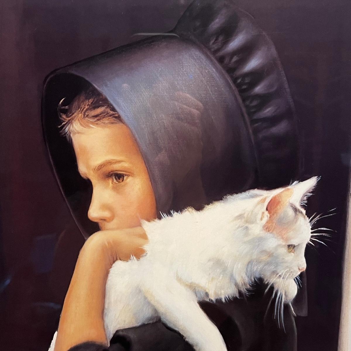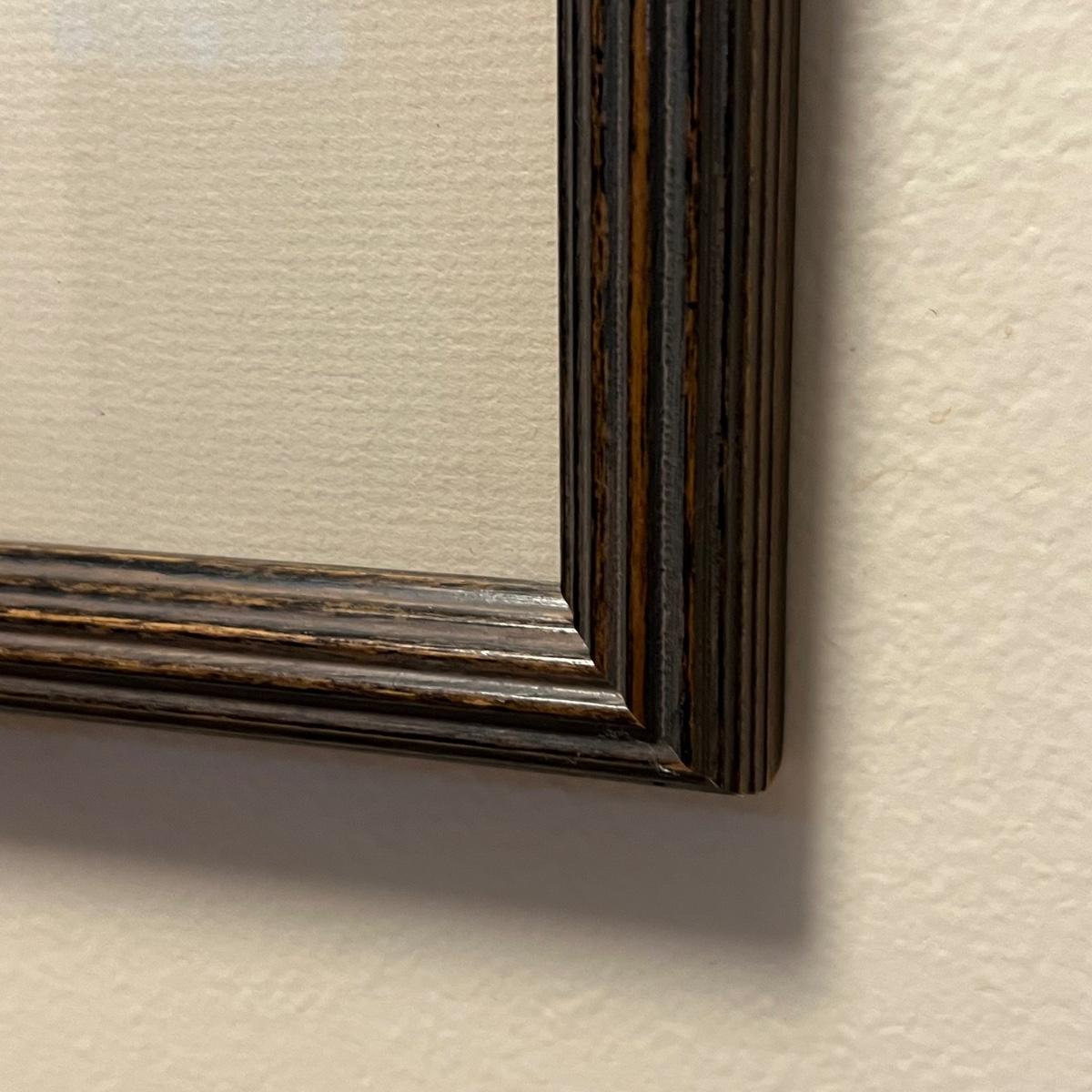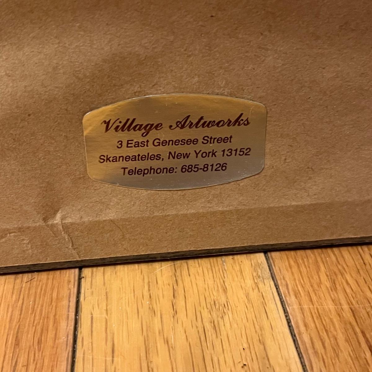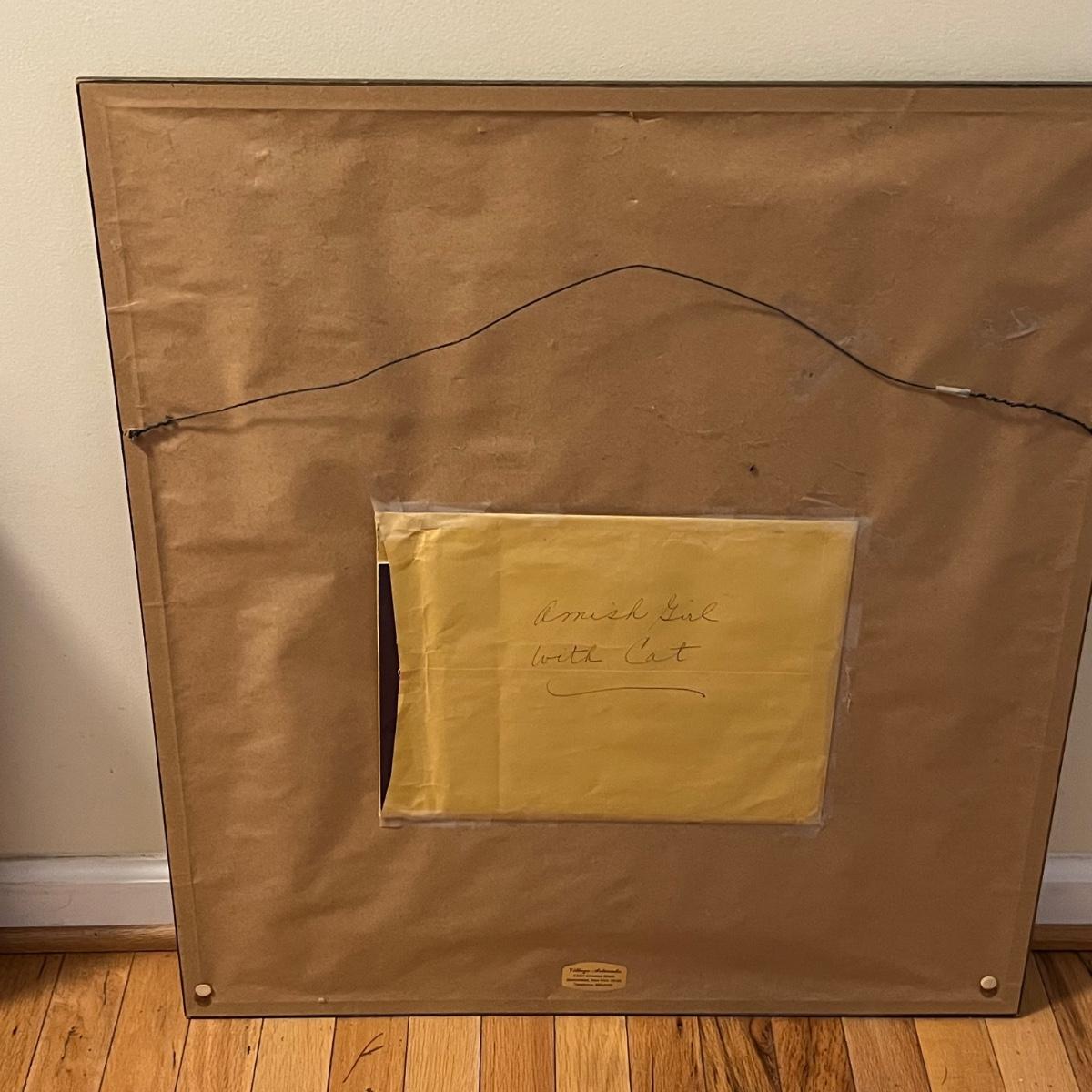This large framed print is under glass and matted and mounted in a dark wood frame that measures 26” x 1.5” x 32”H. Print has a stamped signature, and a catalogue of the artist's work is included.