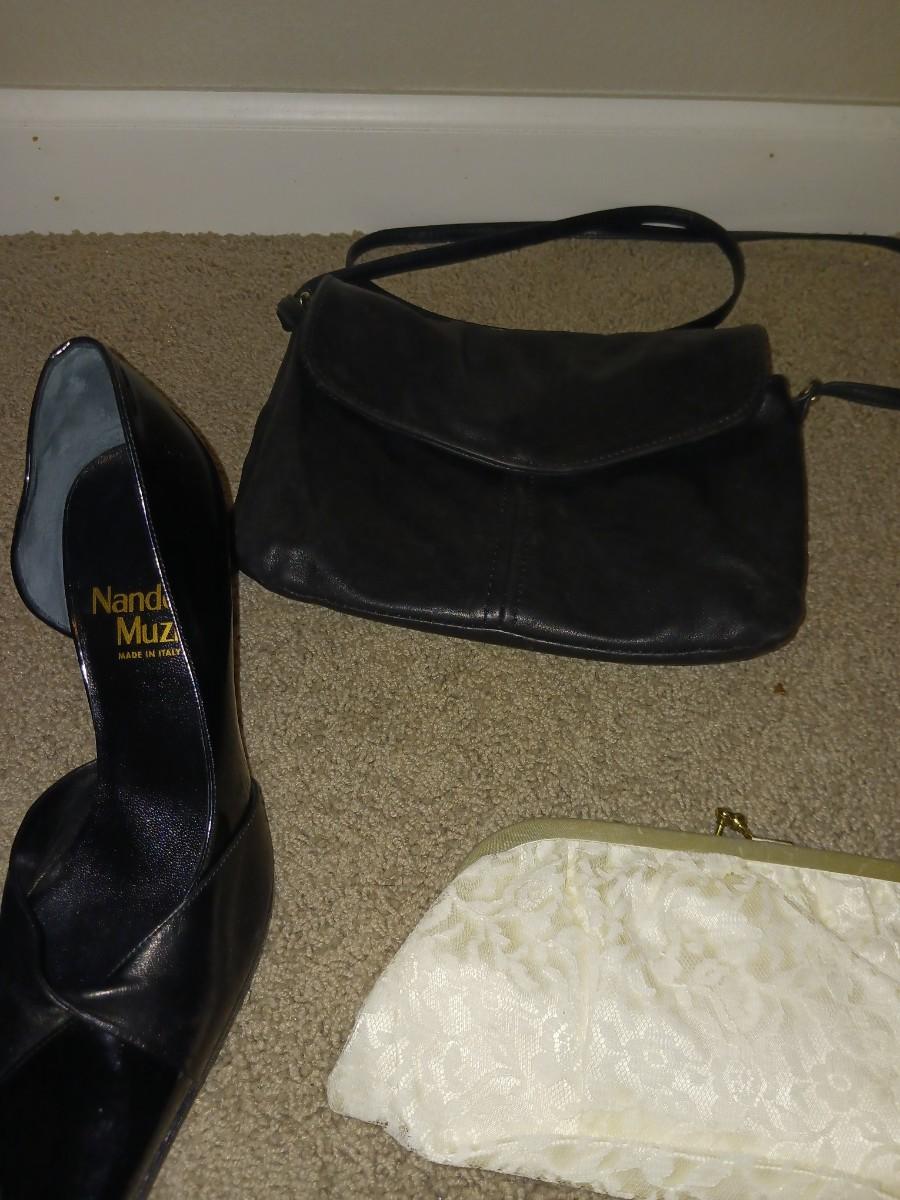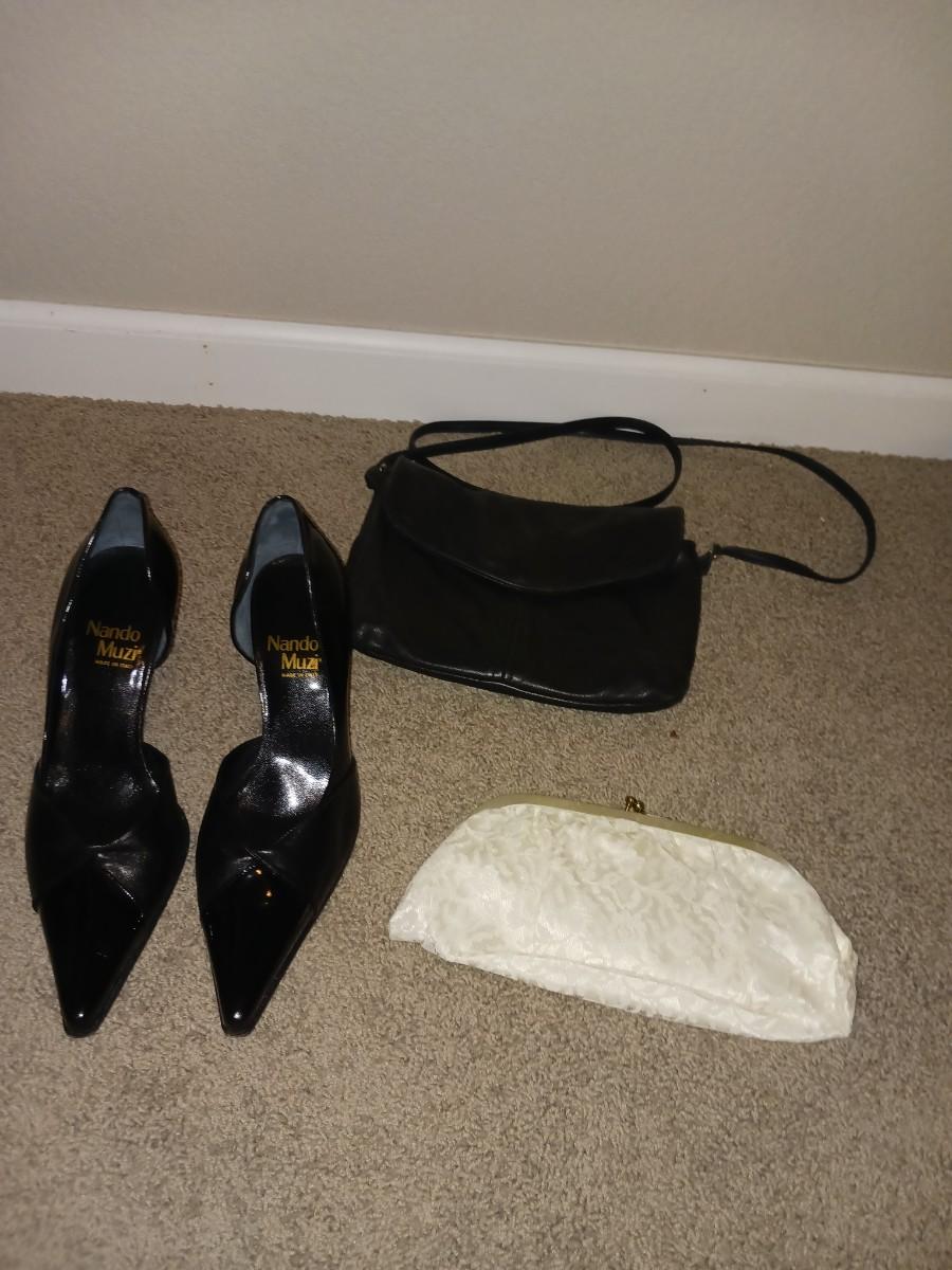 NANDO MUZI DRESS SHOES MADE IN ITALY (7), PURSE BY VICTORIA LEATHER CO AND A CLUTCH PURSE