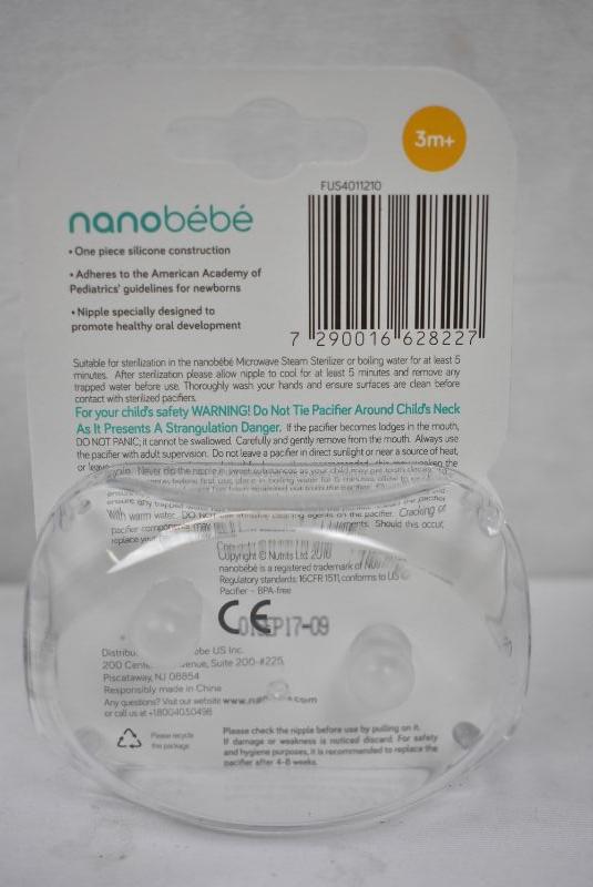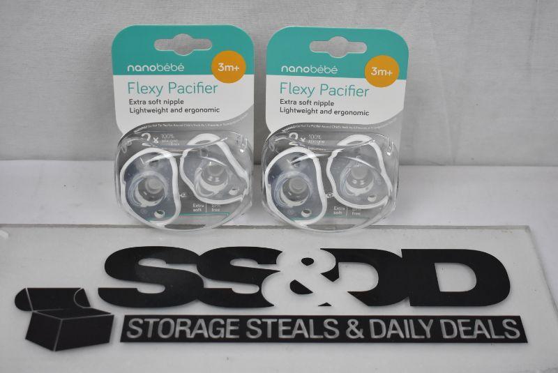 Nanobebe Baby Pacifier, 3m+ - White, 2 packages of 2 - New