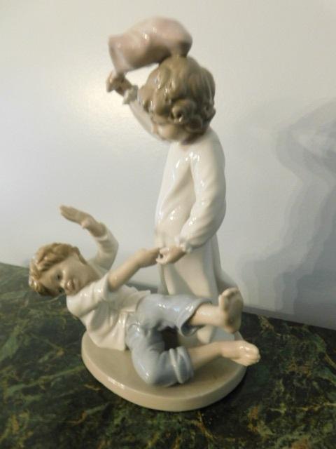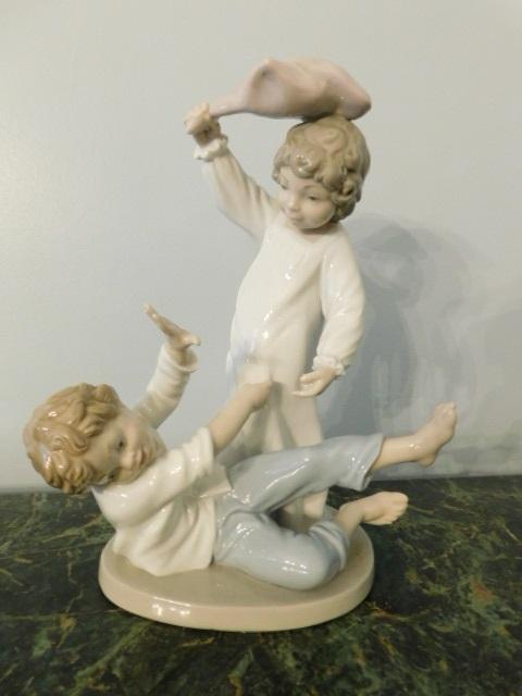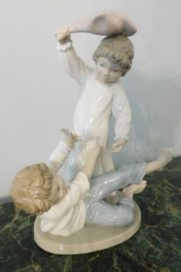 Nao by Lladro Pillow Fighting Siblings Figurine:  9 1/2" Tall