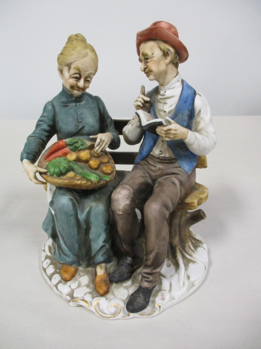 Napcoware PORCELLANE D'ARTE C8627 Old Man Woman Vegetable Basket Figurine Statue