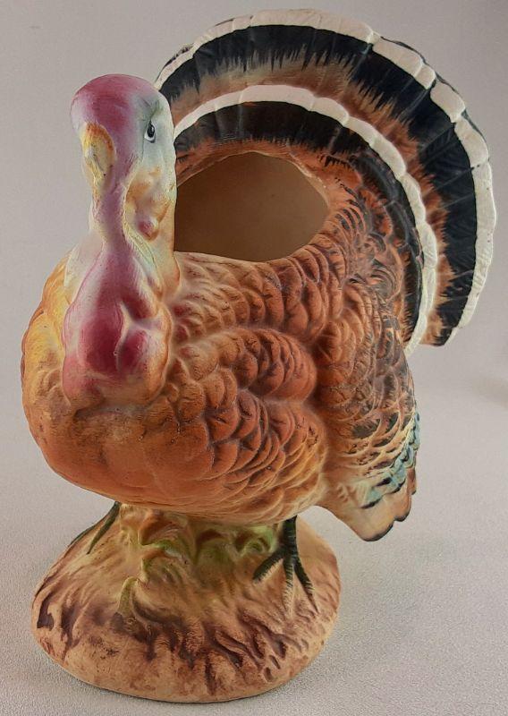 Nicely detailed turkey with a small flea bite chip on the base. Measures 6in. tall x 5.25in. and 5in. wide.