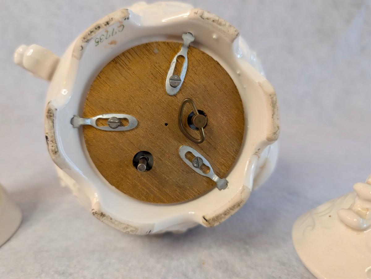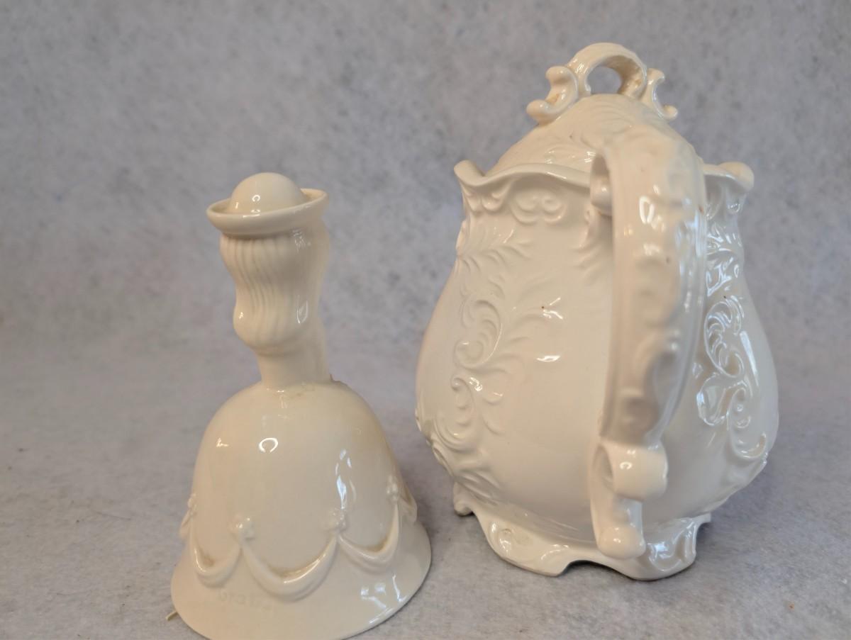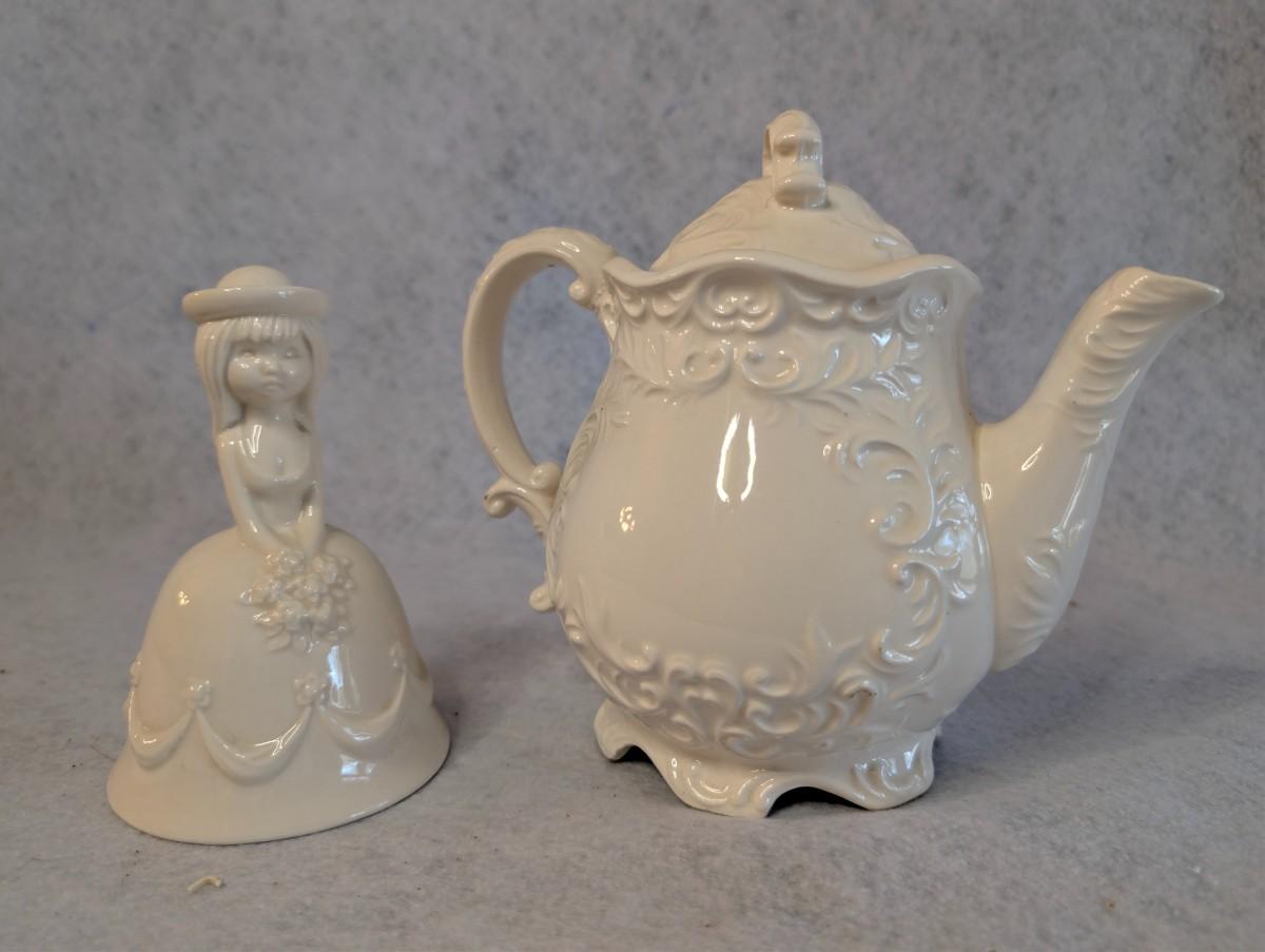 Napcoware white teapot w/ lid and White Porcelain Flower girl bell