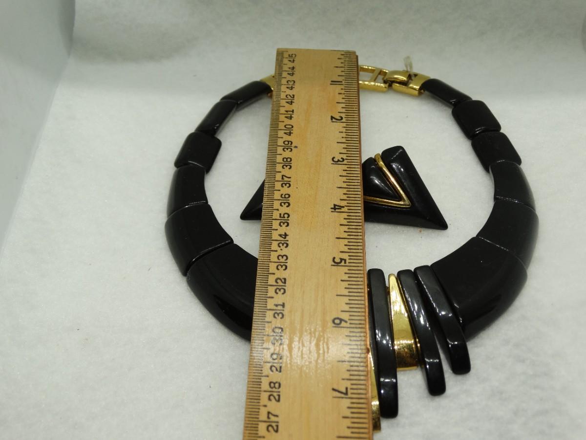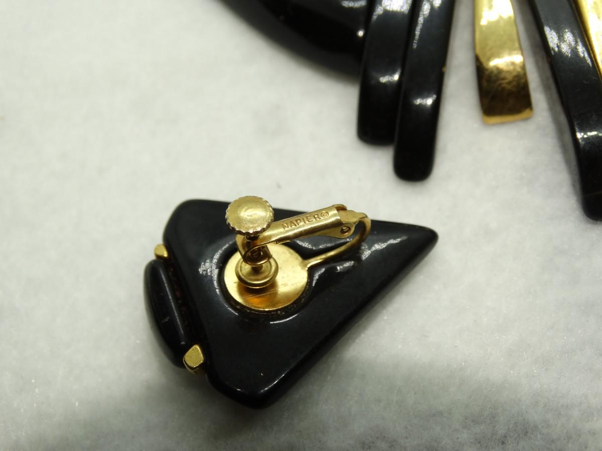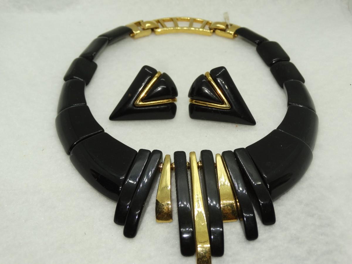 Napier Egyptian Style Black & Gold Tone Necklace & Screw Back Earrings