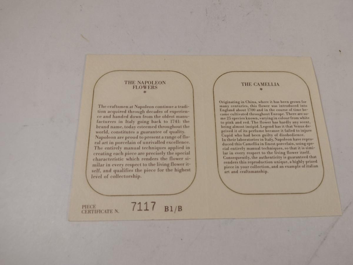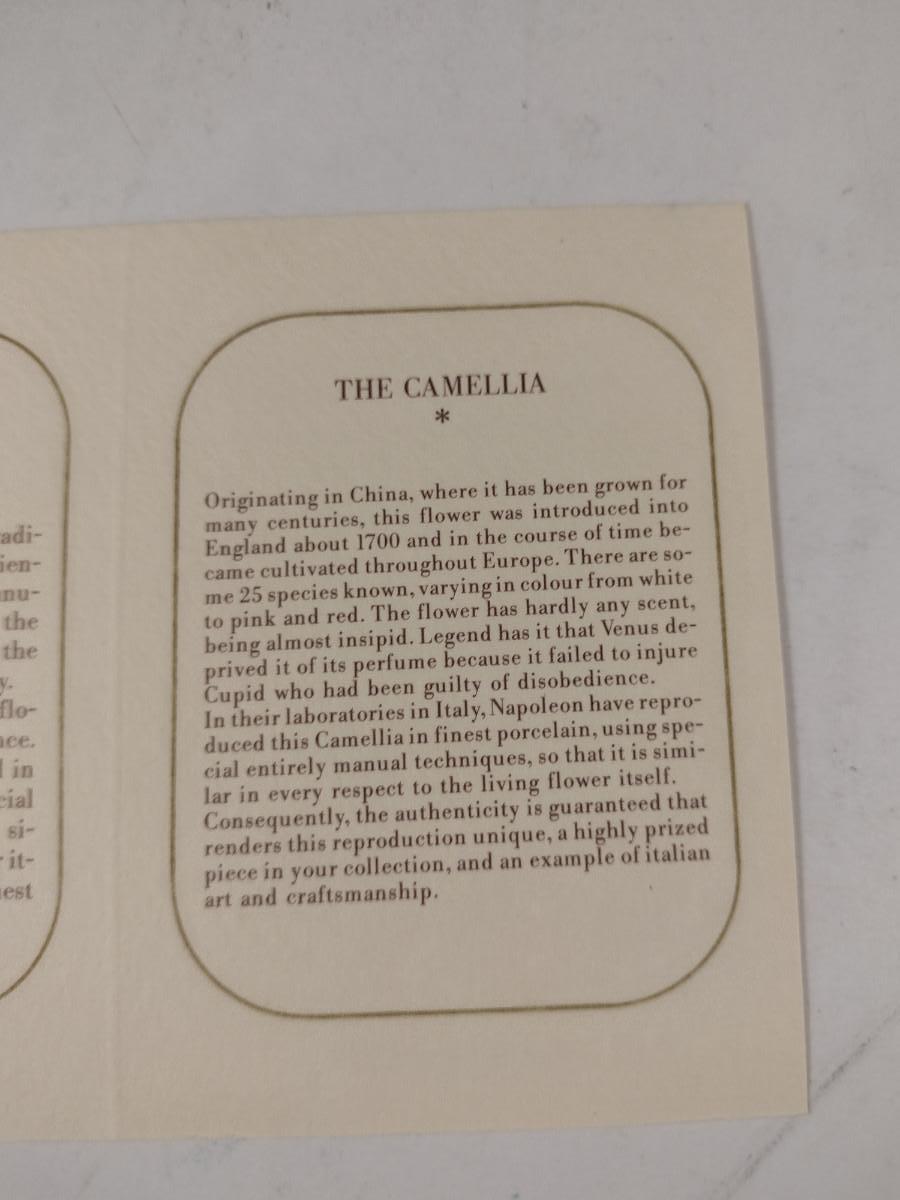 Napoleon Italian Porcelain Camelia Figurine- Approx 3" Tall, 6" Wide. Original box included.