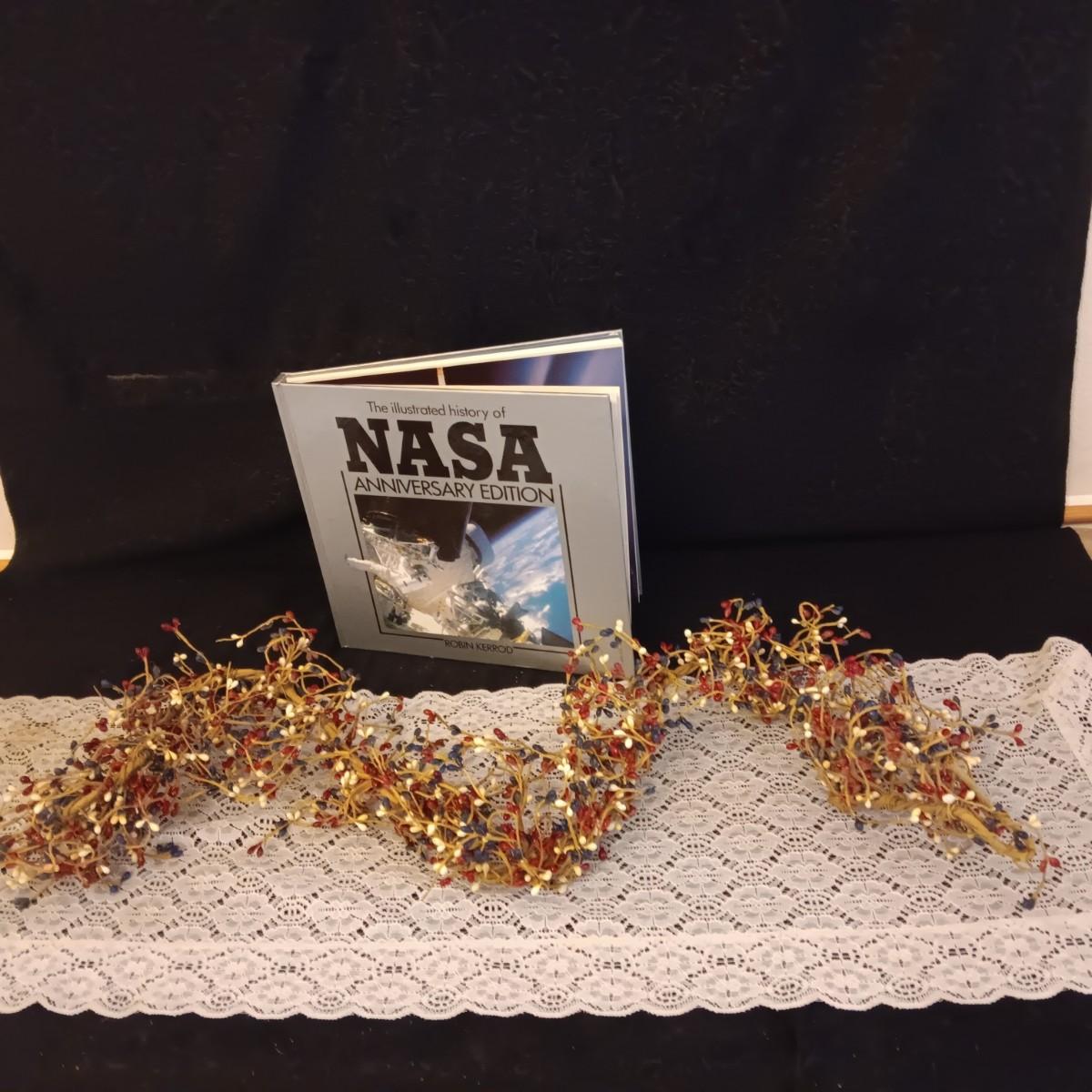 NASA ANNIVERSARY EDITION COFFEE TABLE BOOK AND RED, WHITE AND BLUE GARLAND