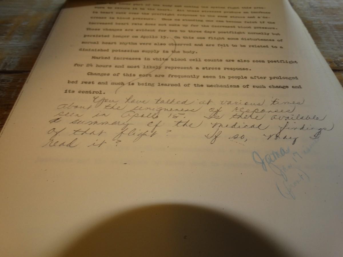 Nasa Paper writing by Charles A. Berry M.D. "Your Body in Space - "The Astronaut Doctor"
