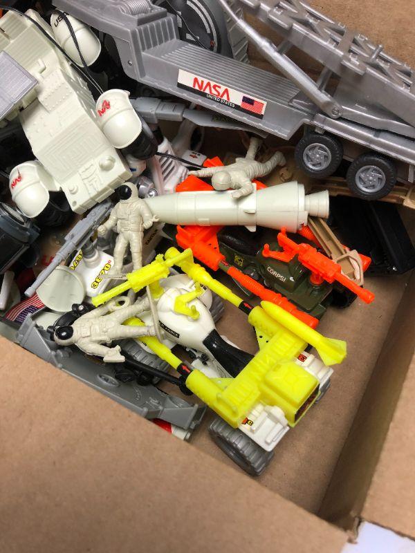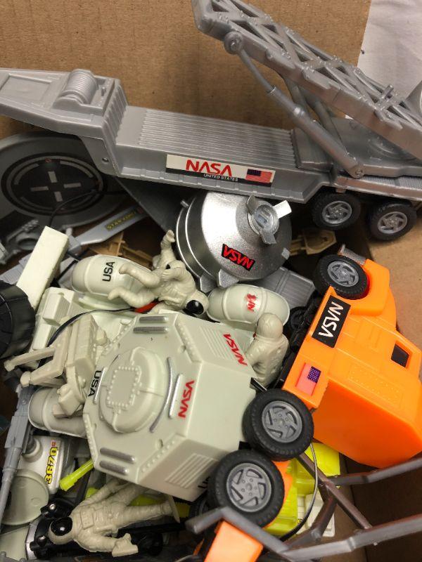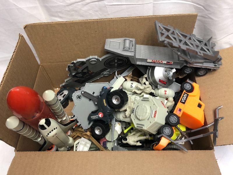 Quantity of 1 Box, Box has multiple NASA toy vehicles and figurines. Sets may not be Complete, Mild play wear imperfections as pictured, Item(s) are Sold as is - Photo's are part of the Description - Shipping is available or Pickup by Appointment