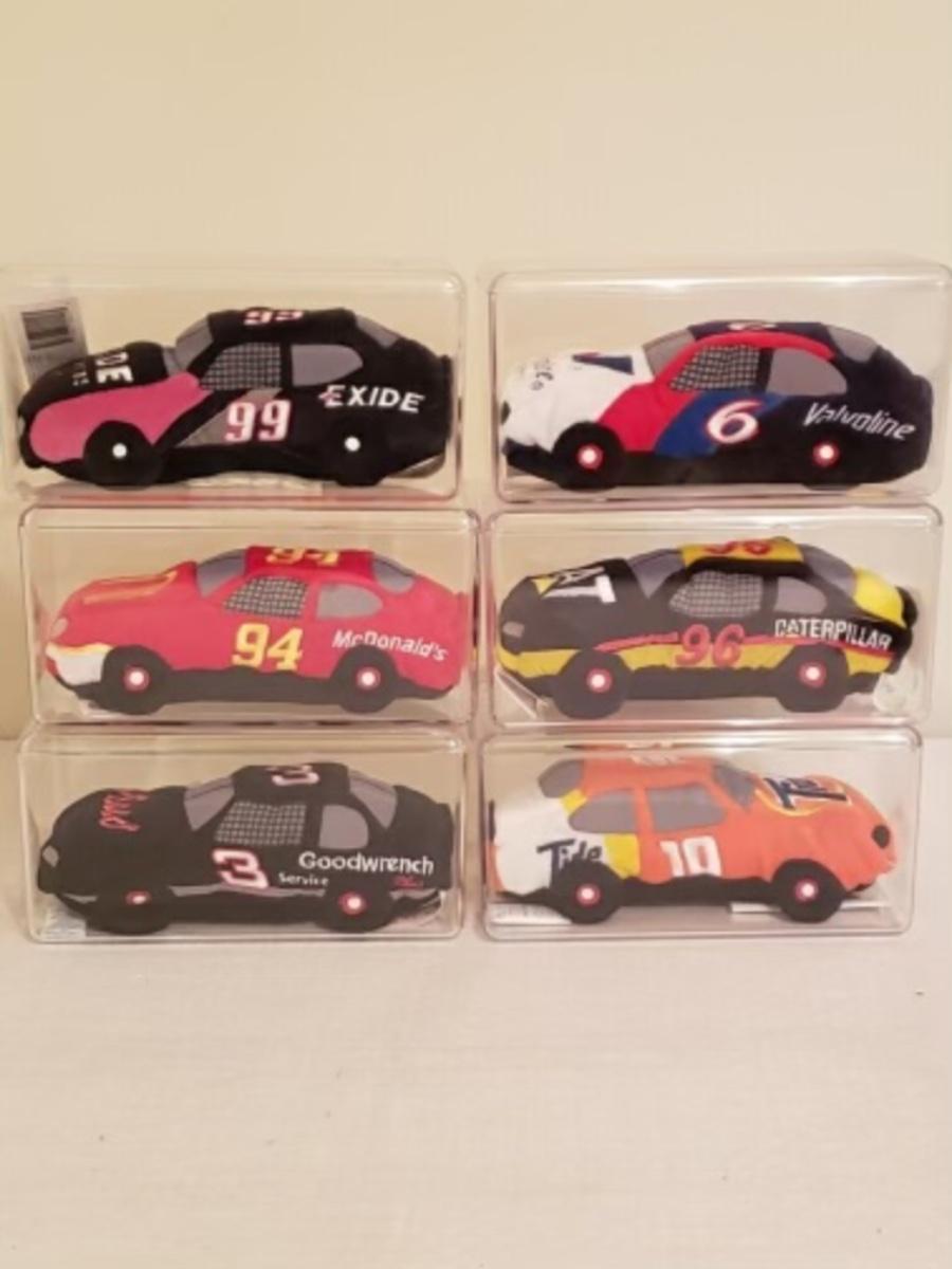 Nascar Beanie Racers. Set of 6 with storage containers. Excellent Condition.