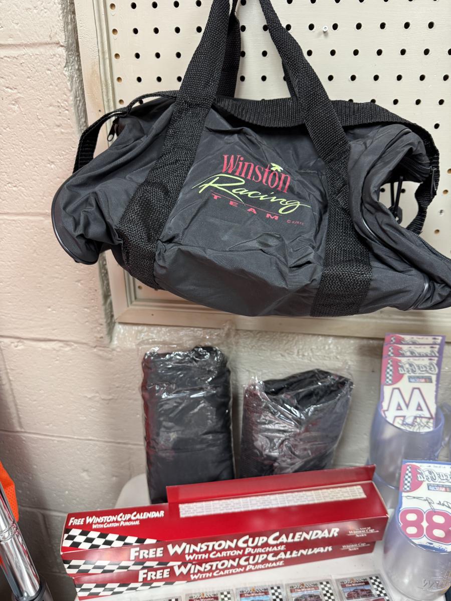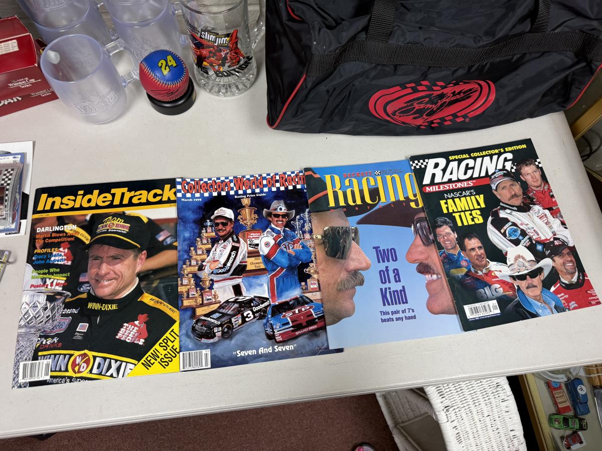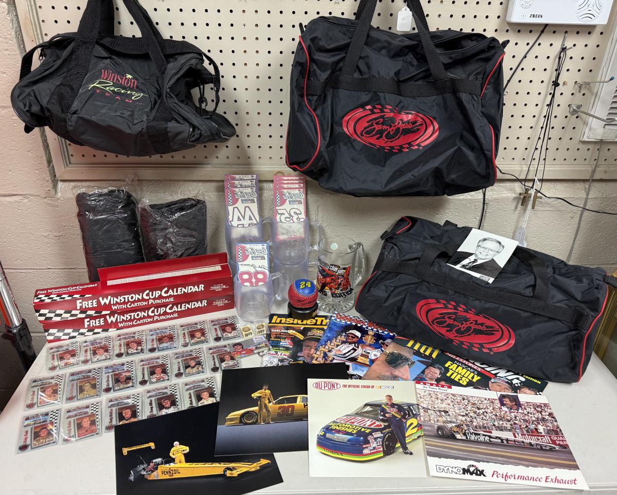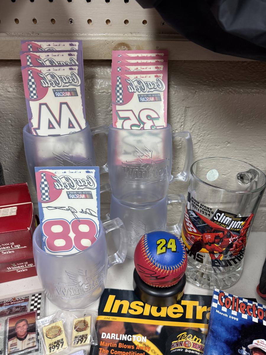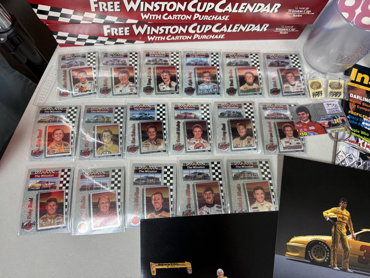 Various NASCAR drivers, magazines, programs, Winston duffle bags, collectible cards & stickers, calendars, cups,