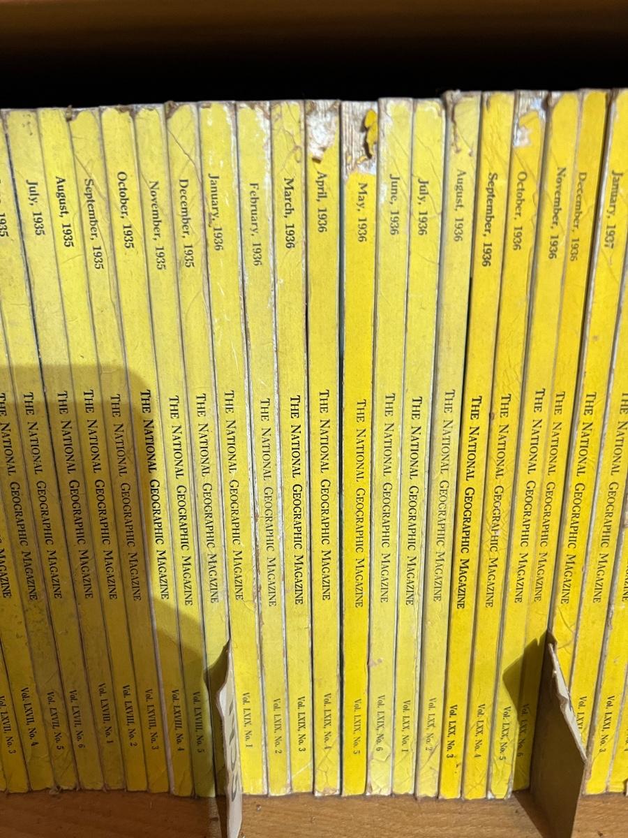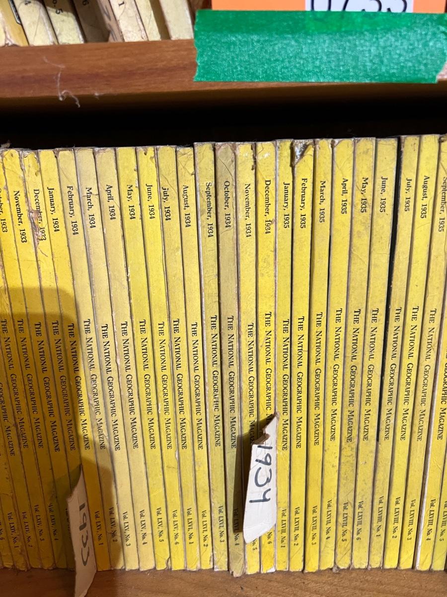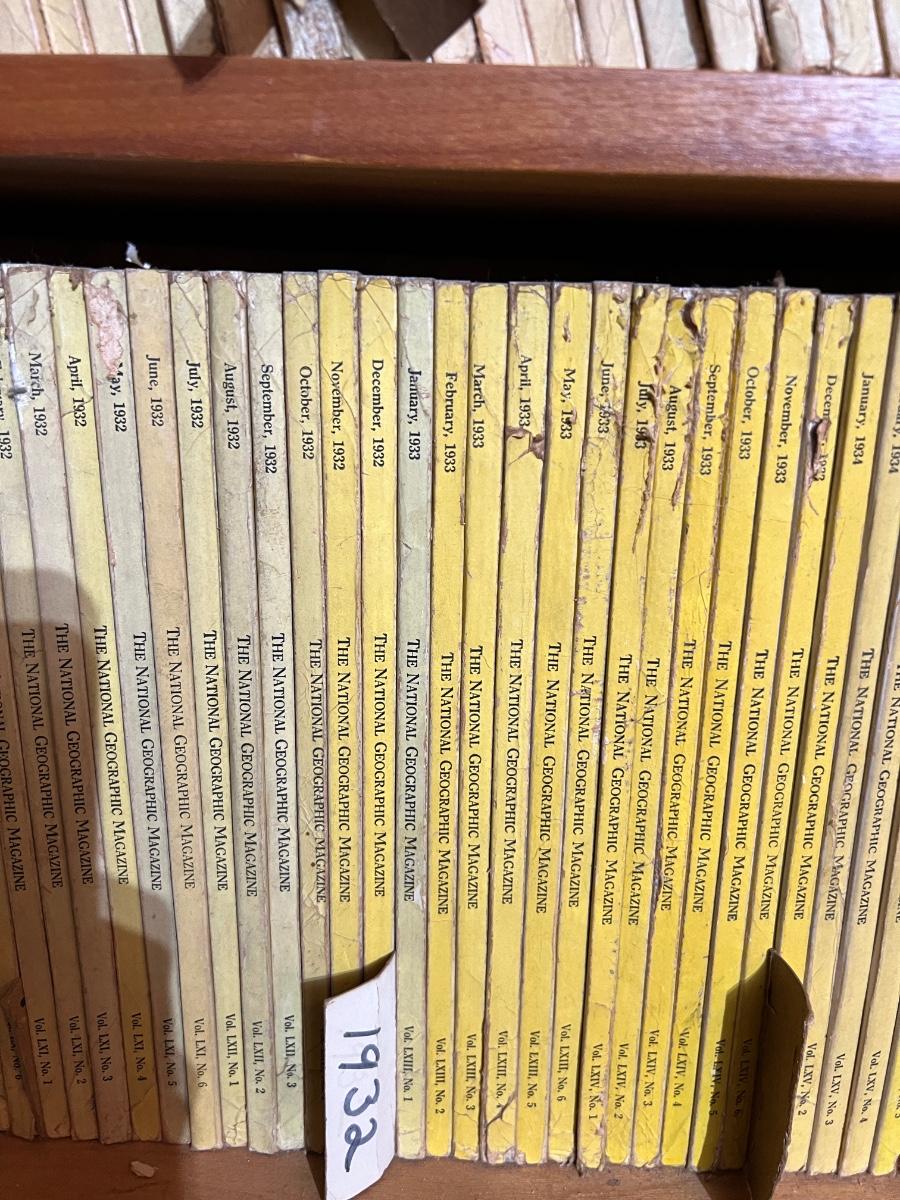 2 Shelves of Vintage National Geographic Magazines c.1931-1946