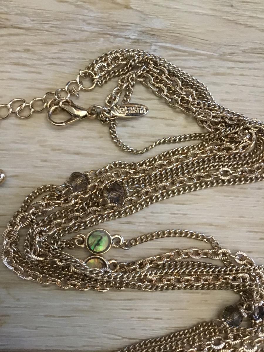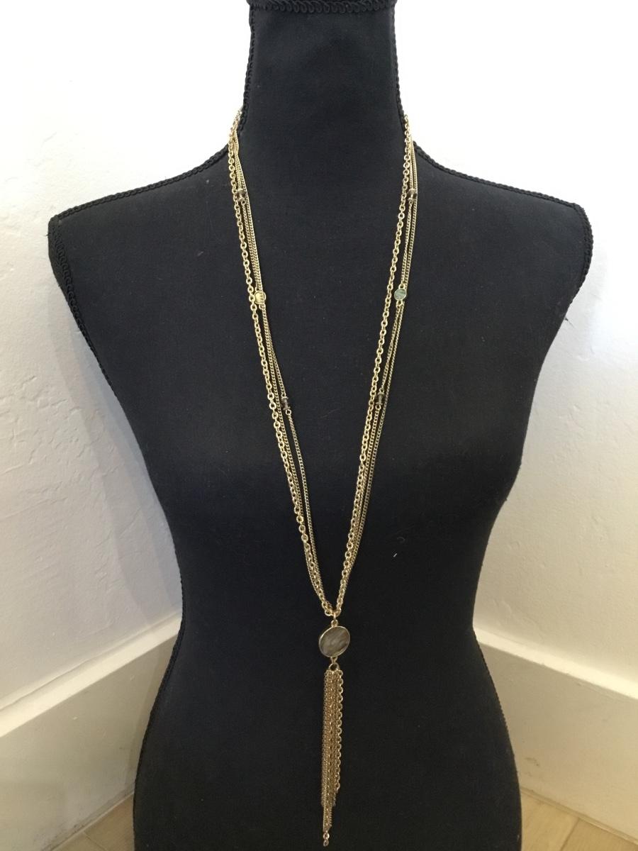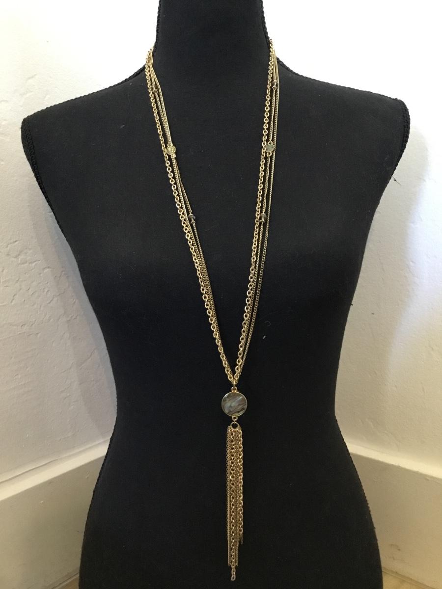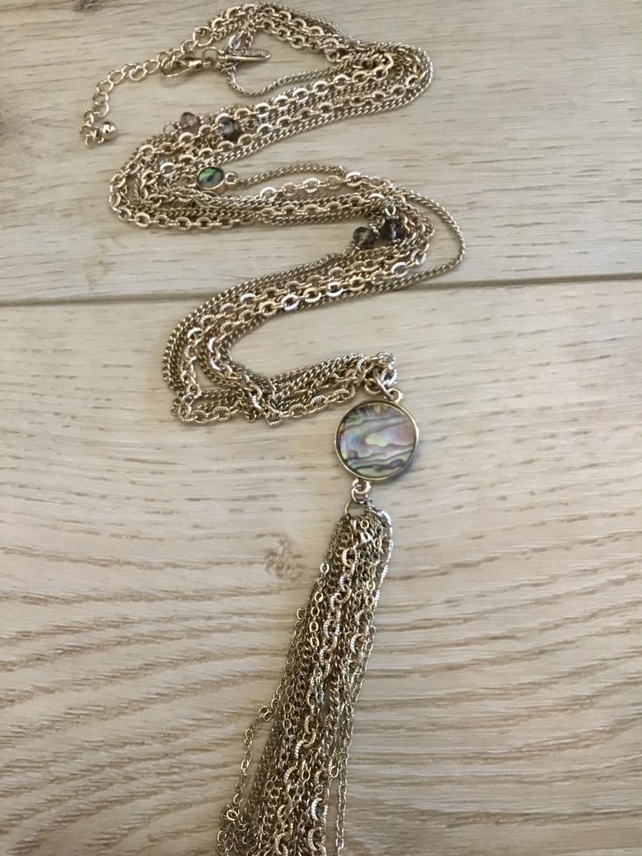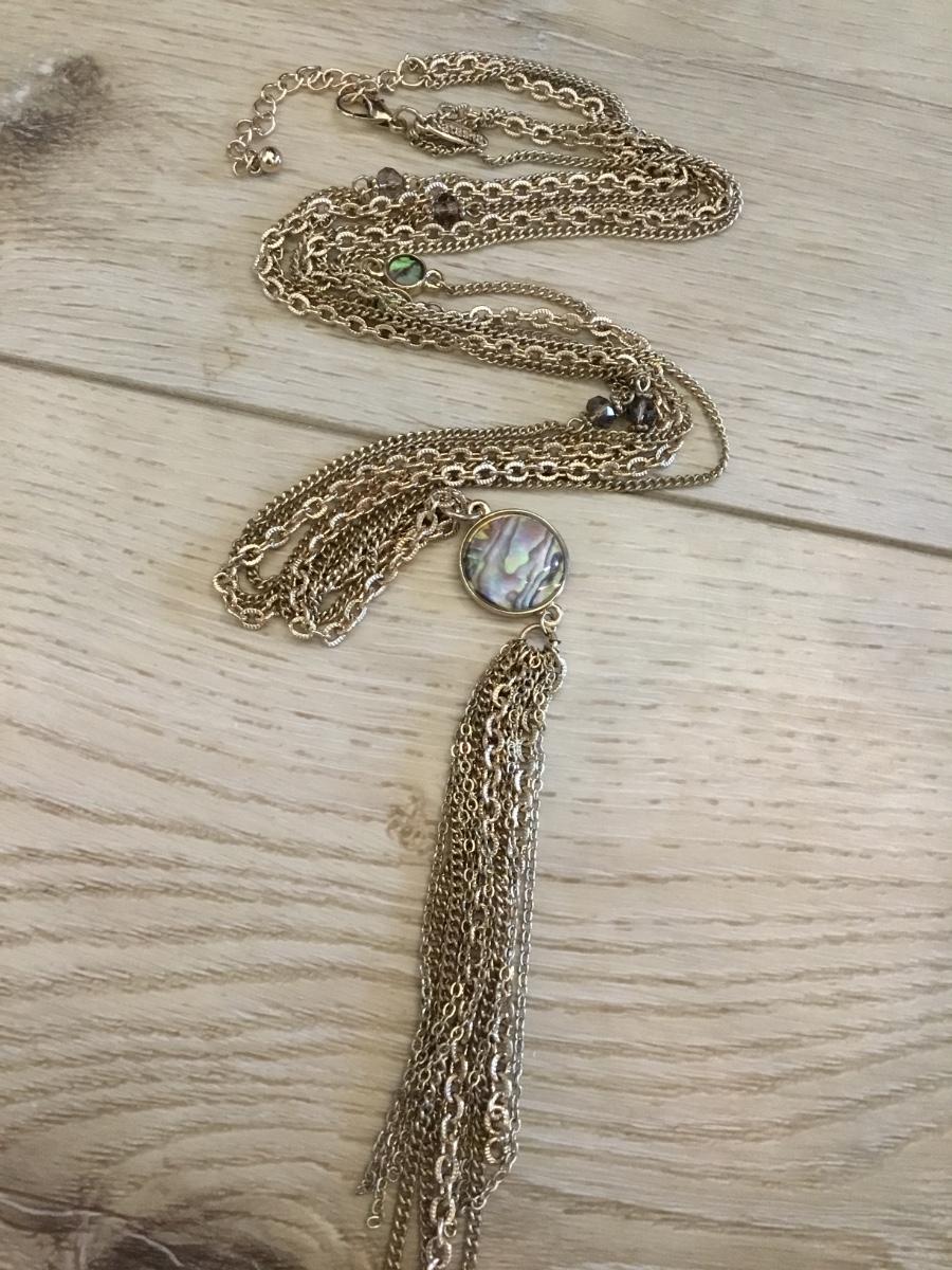 Natasha Gold tone, faux Abbelone Shell, statement, necklace