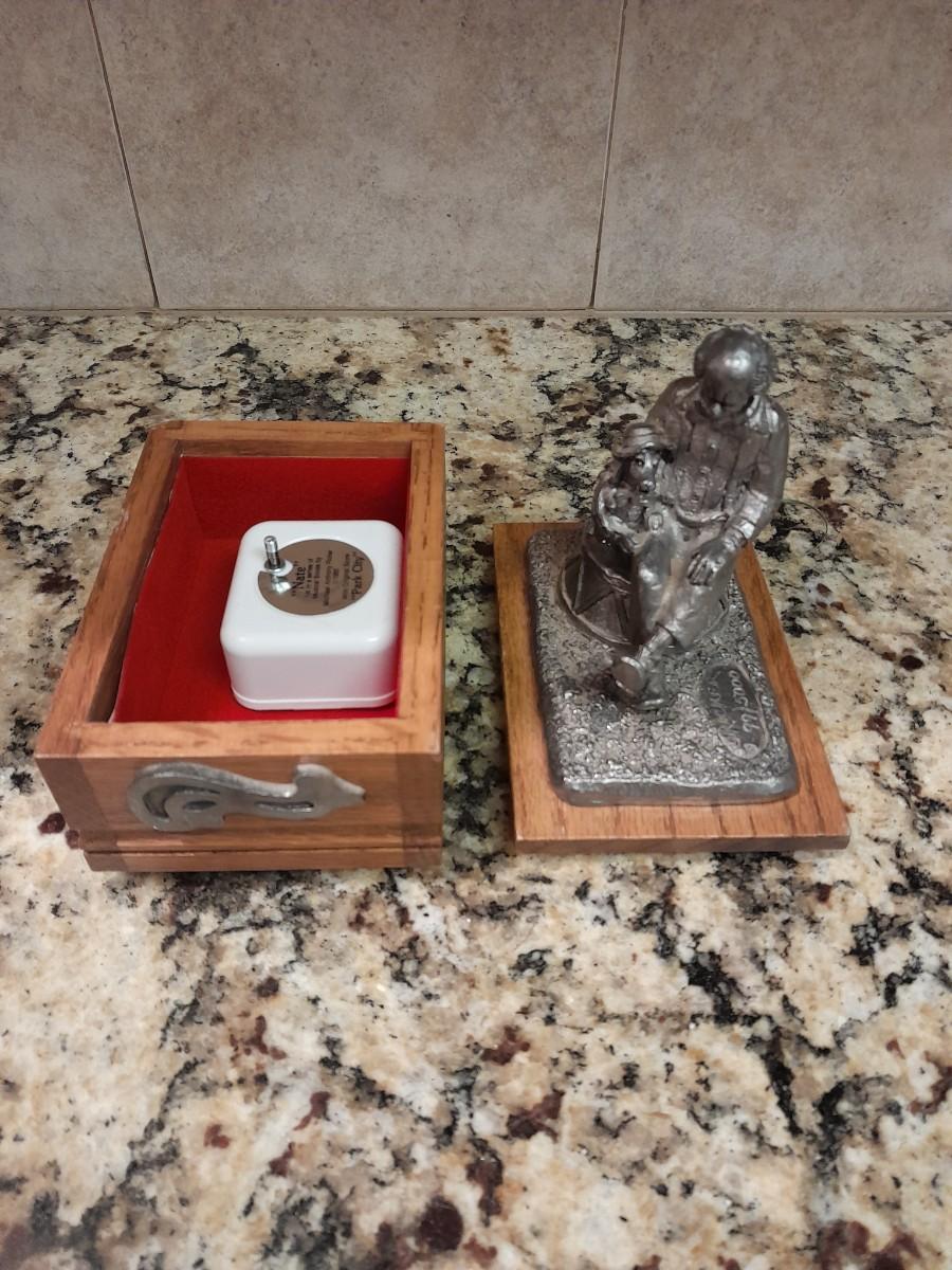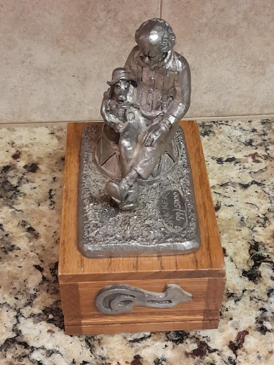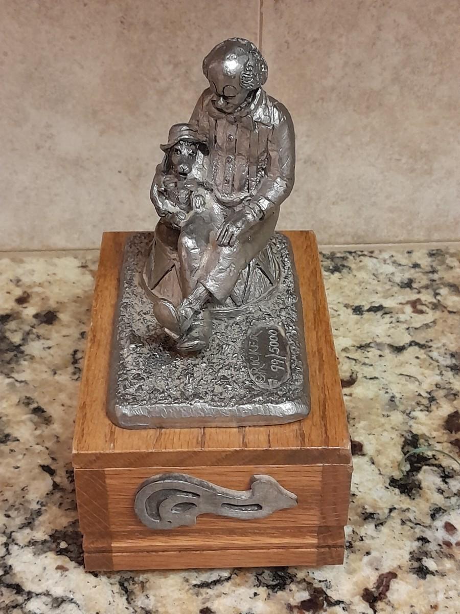 RICKER PEWTER COLLECTABLE MUSIC BOX "NATE" 1ST IN A SERIES OF MUSICAL BOXES BY MICHAEL ANTHONY RICKER, PLAYS ORIGINAL SCORE "PARK CITY"