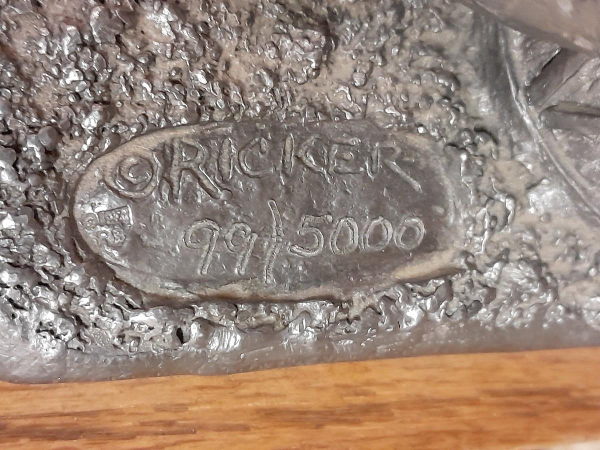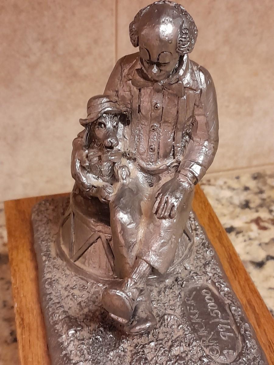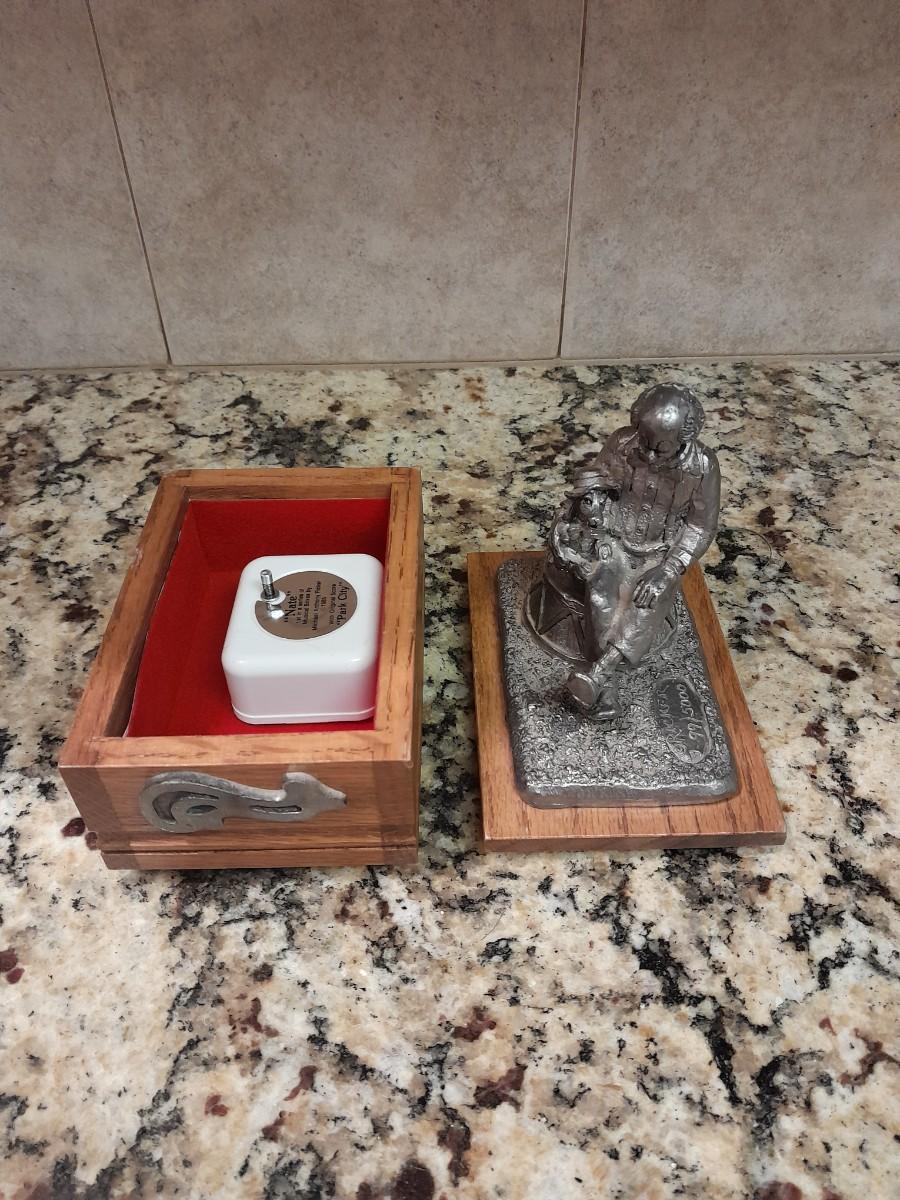 RICKER PEWTER COLLECTABLE MUSIC BOX "NATE" 1ST IN A SERIES OF MUSICAL BOXES BY MICHAEL ANTHONY RICKER, PLAYS ORIGINAL SCORE "PARK CITY"