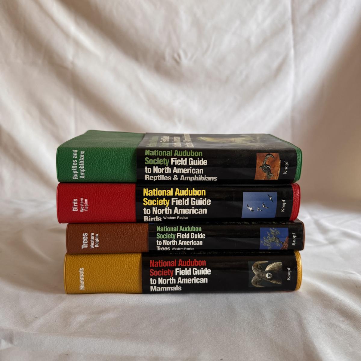 Lot includes four National Audubon Society North American field guides on birds, mammals, trees, reptiles and amphibians. It also includes TRAQ binoculars model no. 3001. They are capable of spotting 353ft at 1000 yds. When fully extended, they measure 7” x 2” x 6”H. Shipping available.
