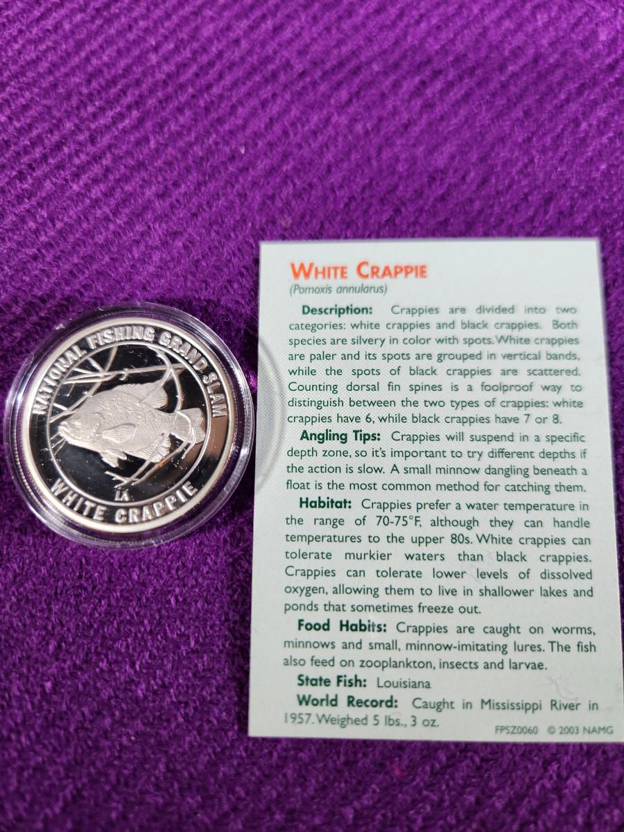 National Fishing Grand Slam Silver Coin Collection WHITE CRAPPIE Coin