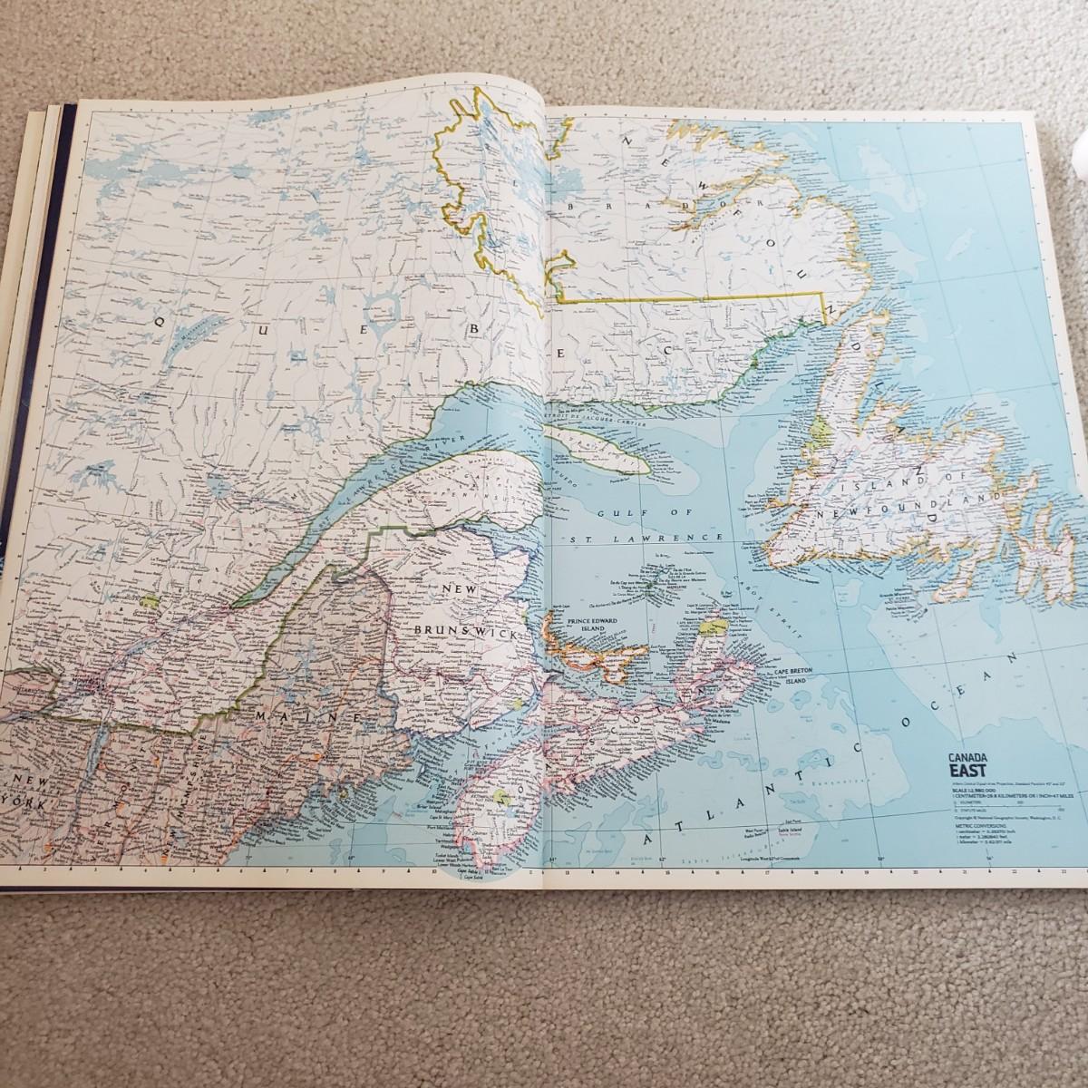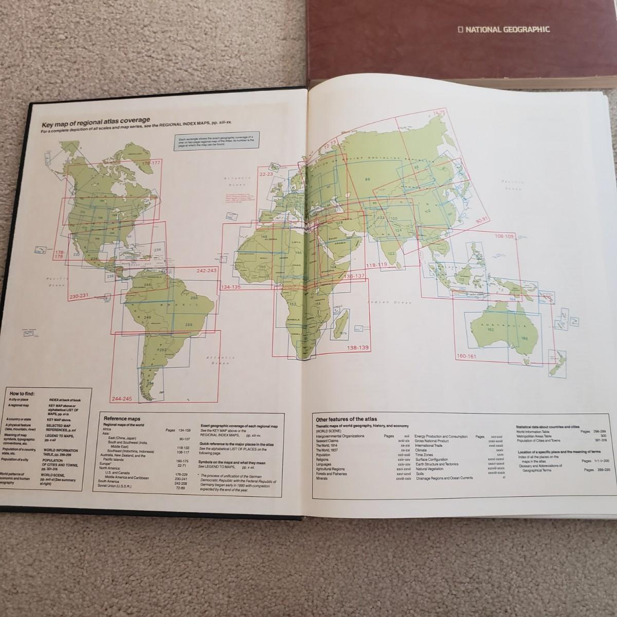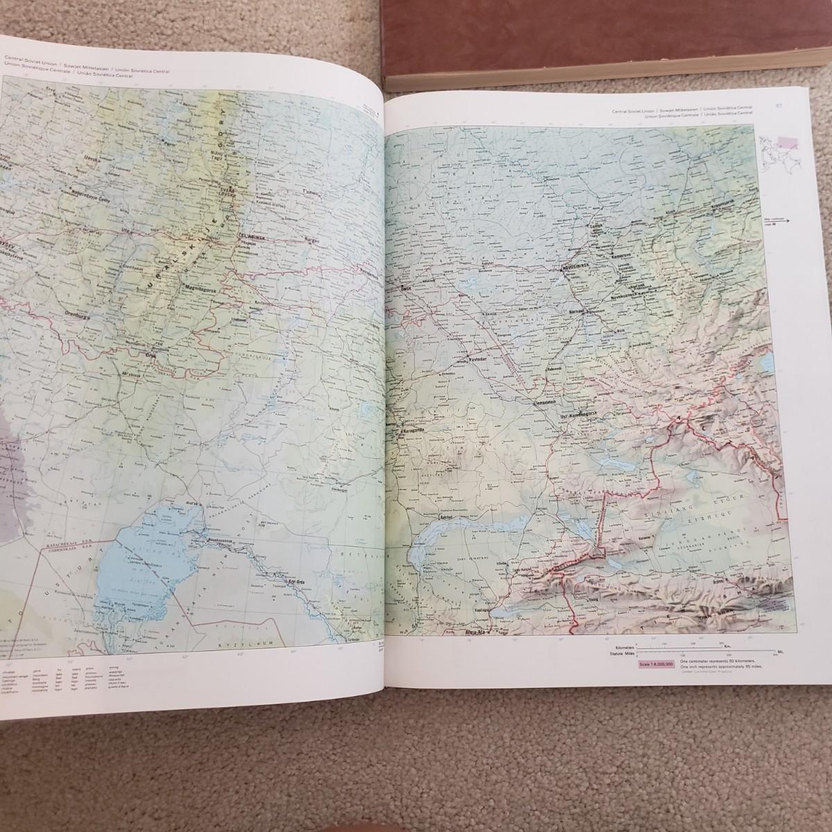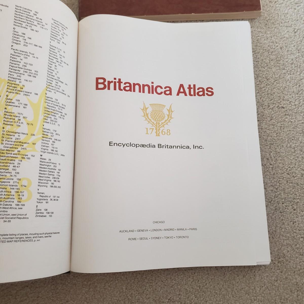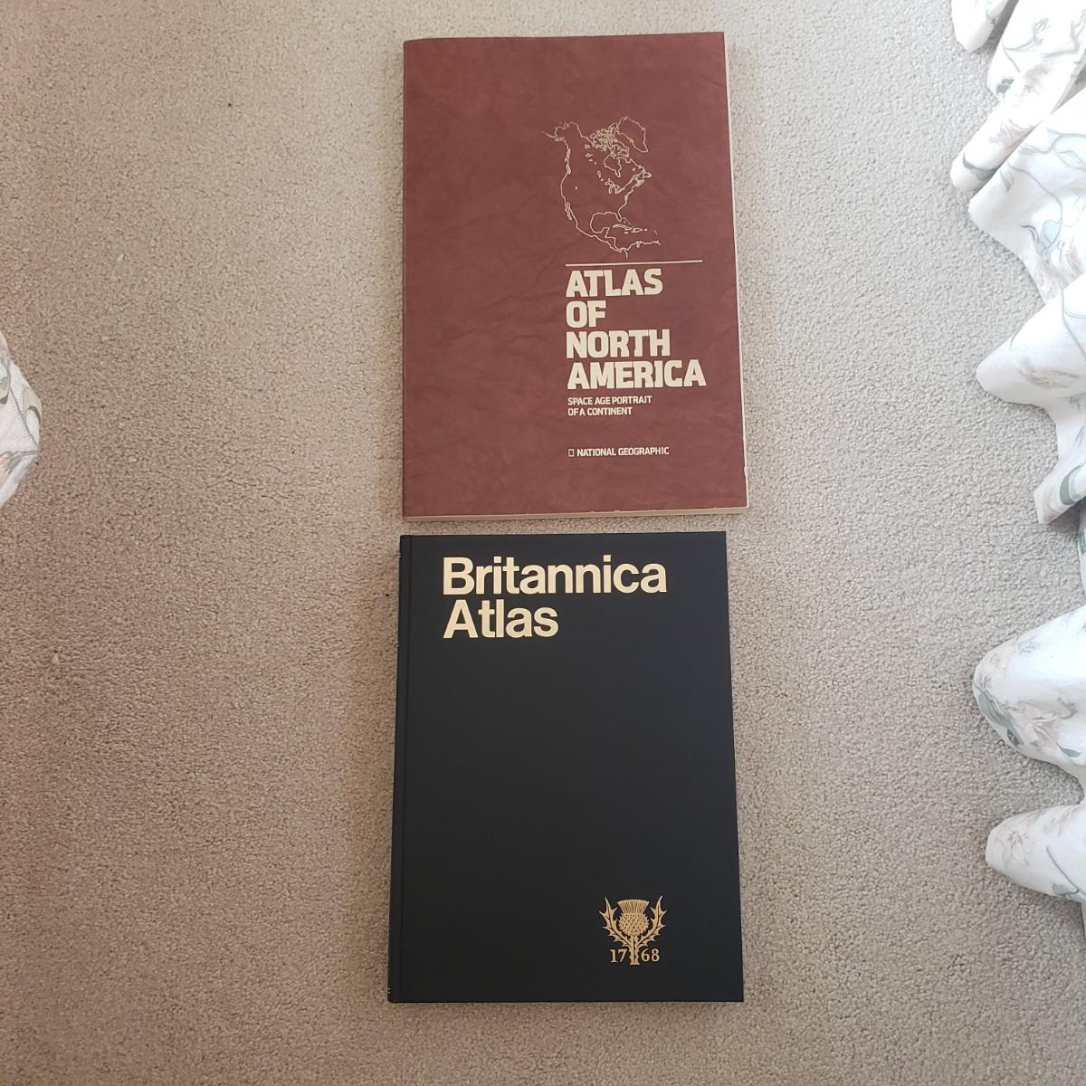 This lot features two large atlases from National Geographic and Britannica. See pictures for copyright dates.