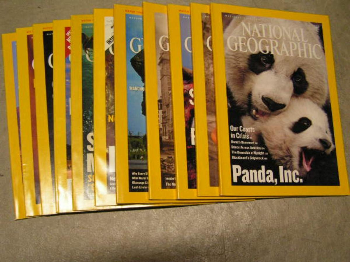 National Geographic magazines. Most of them are in custom faux leather book shelf jackets. Each jacket holds 6 magazines/months of National Geographic and they are custom printed indicating the year and months contained in that jacket. There are a few years that are not in jackets. 2008 thru 2021 do have jackets. 2006-2007 do not have jackets. There are in total about 20 years of the magazines. Hoping they go to a good home. All are in near mint condition.